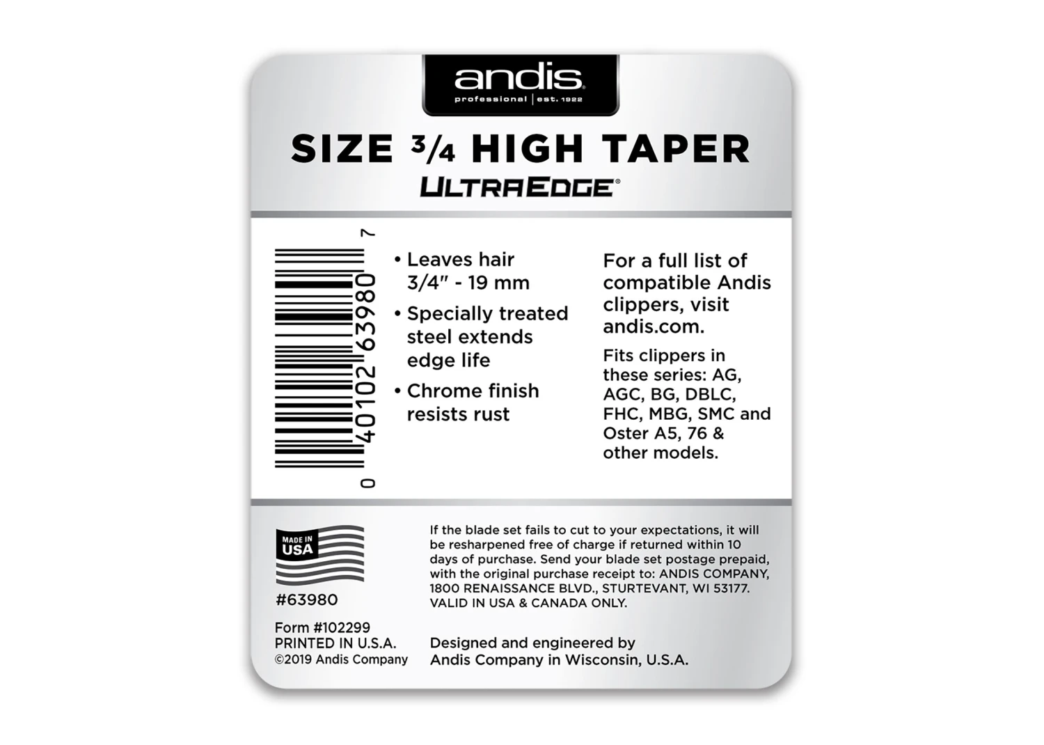 Made from hardened, finest grade tool steel, Andis have added carbon to the cutting edge, to create these unique Ultra Edge professional blades. These blades are ice tempered to stay sharper longer and are chrome plated to resist rust. Compatible with all Andis, Double K, Laube, Moser, Oster and Wahl professional clippers. The new 19mm model is the largest blade of its kind.