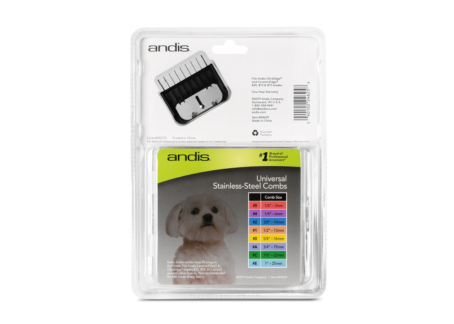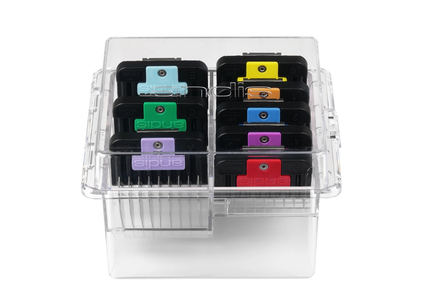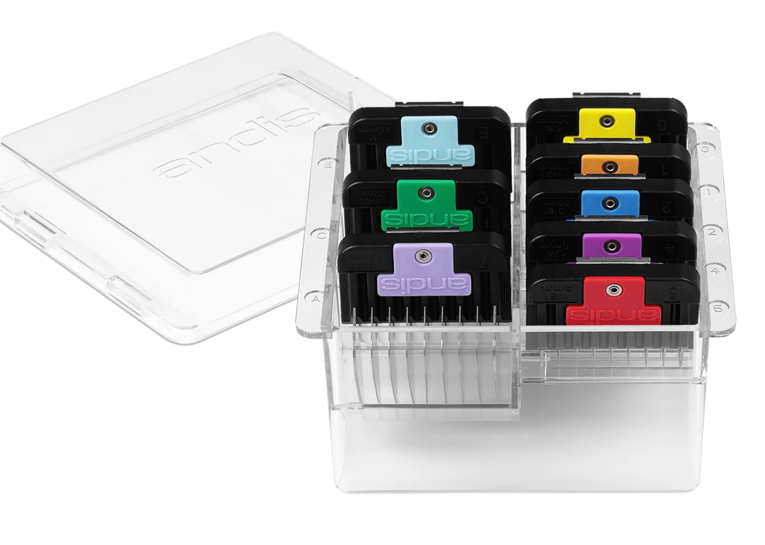 By attaching these stainless-steel combs to an Andis clipper blade size #30 UltraEdge® or CeramicEdge®, they fit securely. They have an optimised tooth pattern for a finer finish and are colour-coded for quick selection of the right size, allowing you to achieve a wide range of lengths and styles.