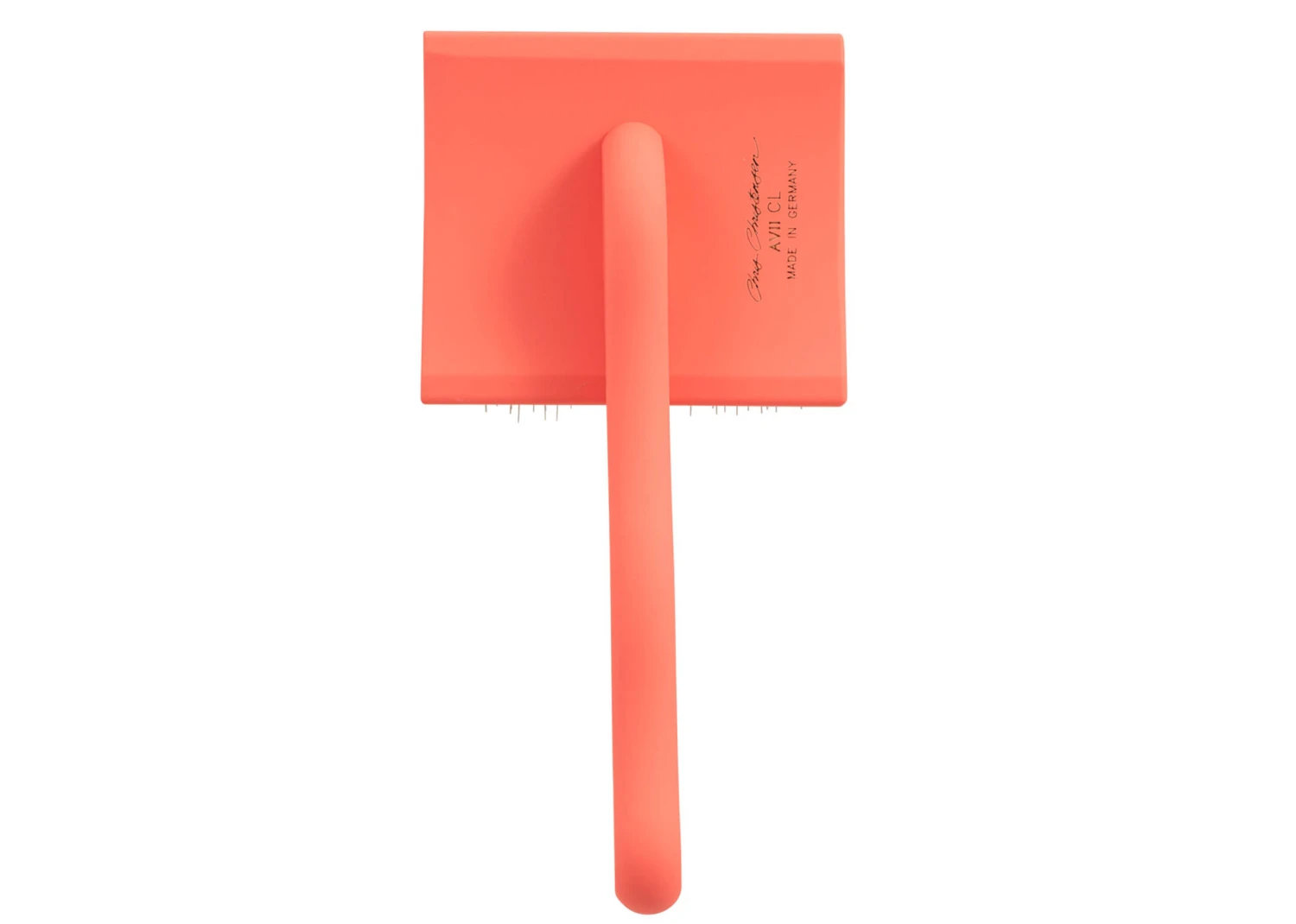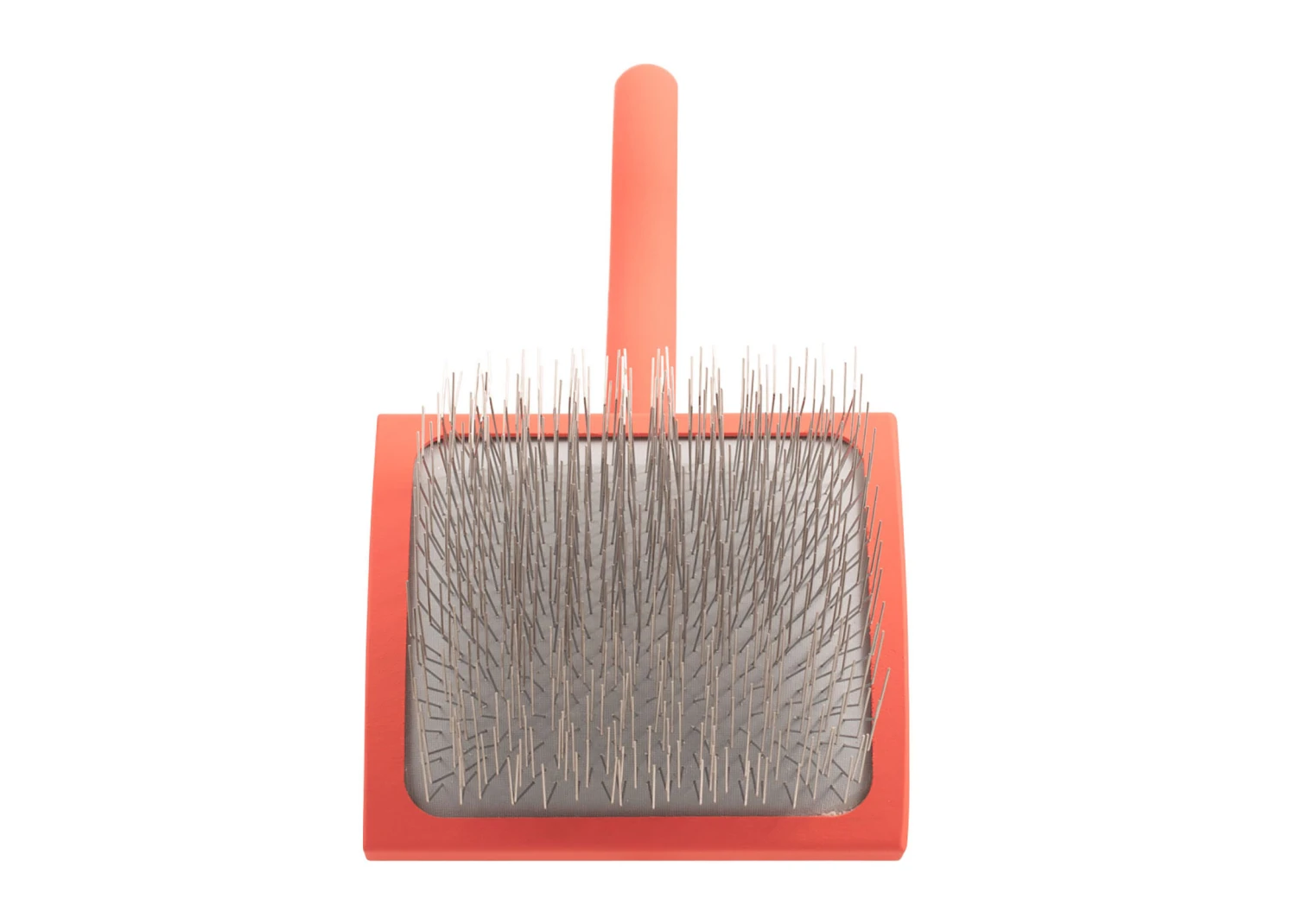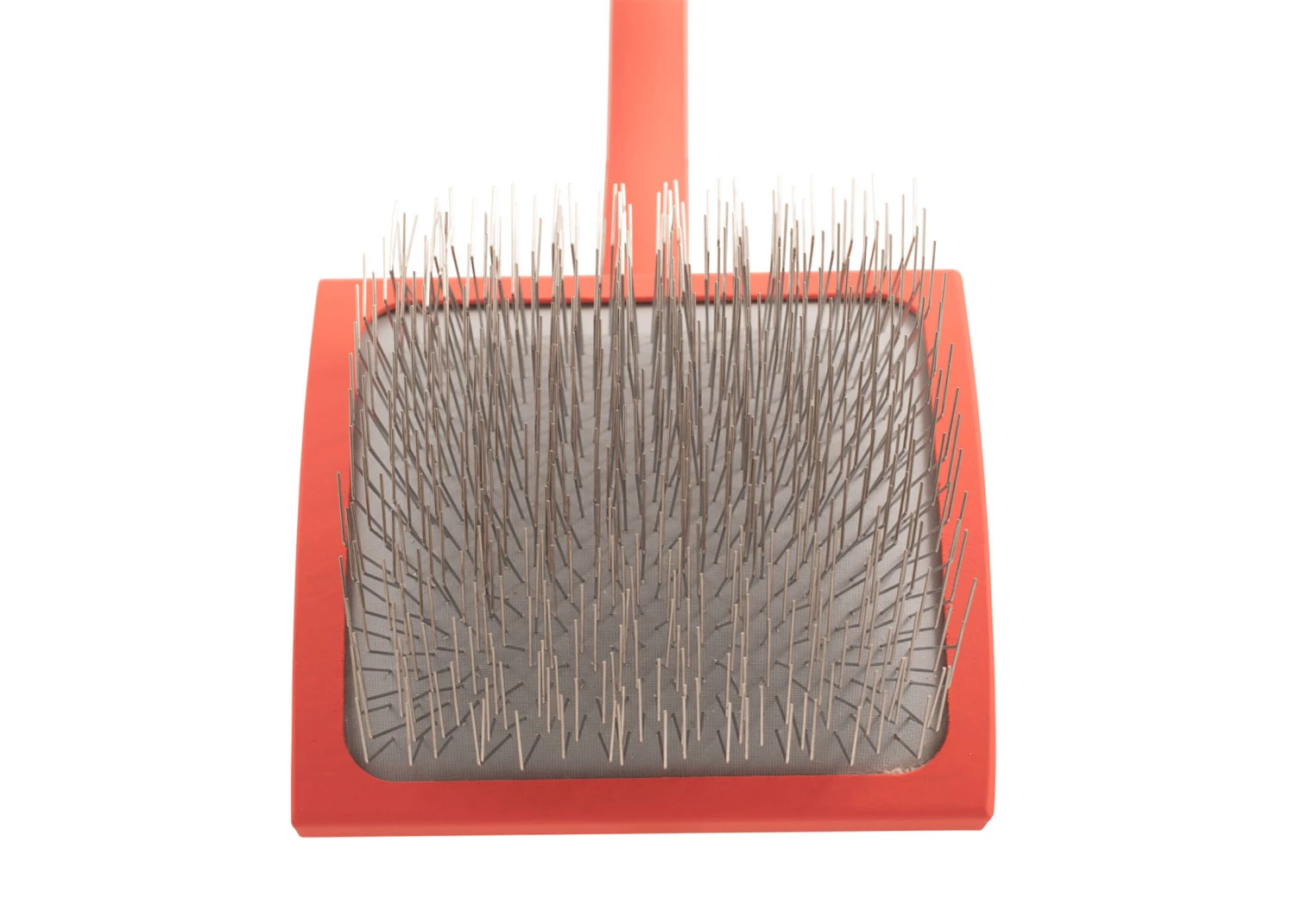 The long, bent pins deeply penetrate longer coats and create lift and movement that you won’t get from any other brush on the market today. Plus, its flexible cushion pad ensures gentle but thorough brushing of even the thickest undercoat. And if that’s not enough, an extreme curved back provides additional control when shaping heads, toplines and legs – making sure every groom looks perfect!