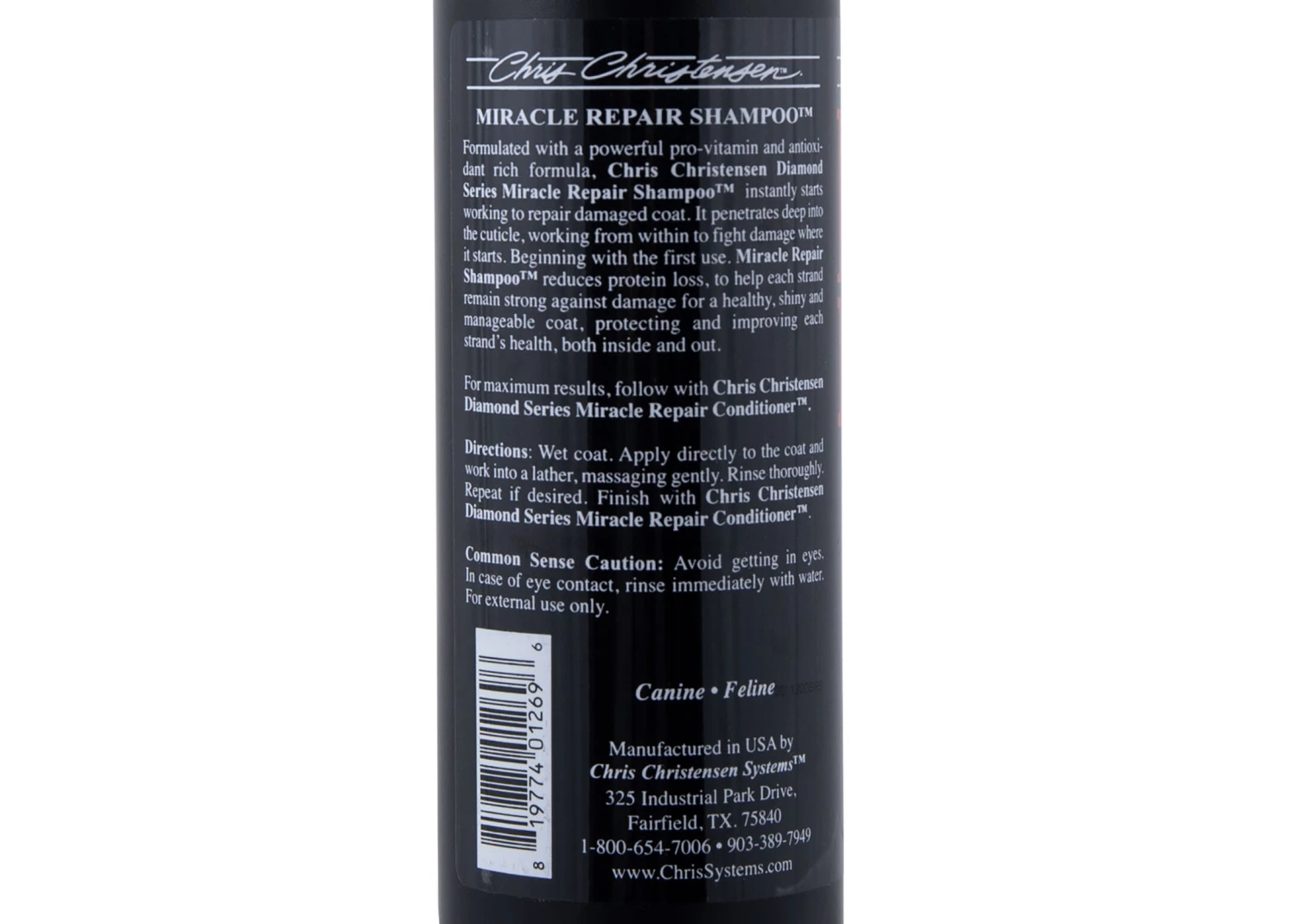 For the healthiest and shiniest coat, there is no better choice than Chris Christensen Systems (CCS) Diamond Series Miracle Repair Shampoo.
