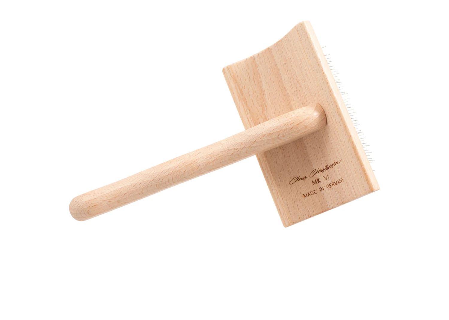 All of Chris Christensen Systems Slicker Brushes have a super soft relaxed cushion and lightweight Beech Wood body with contoured handles to meet the needs of any brushing style or direction. The curved back slicker brushes create a motion that is not obtainable by flat back slicker brushes, cutting your grooming time drastically.