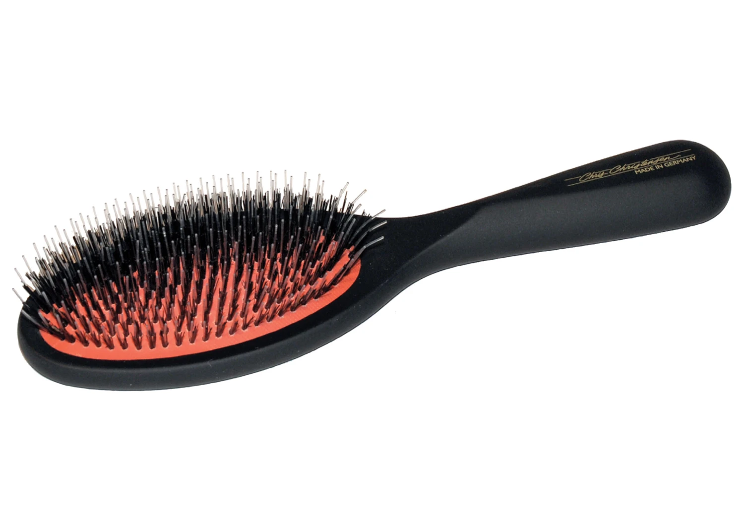 Natural boar / nylon bristle brushes. Ultra flexibility and long-lasting comfort. Strong, durable brush. Hand-finished by German Craftsman, who take pride in their work. Lightweight beech wood groom grip handle for comfort.