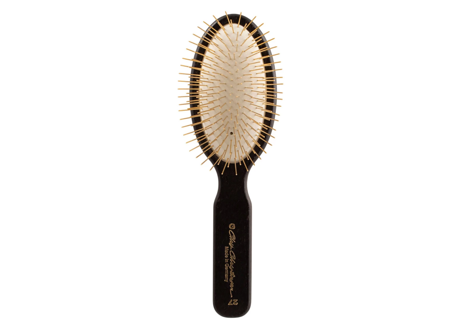 The perfect pin brushes for delicate coats. Ultra flexible cushion with ground and polished gold plated stainless steel comfort tips and 30% more pins than the original series. Lightweight and durable beech wood body.