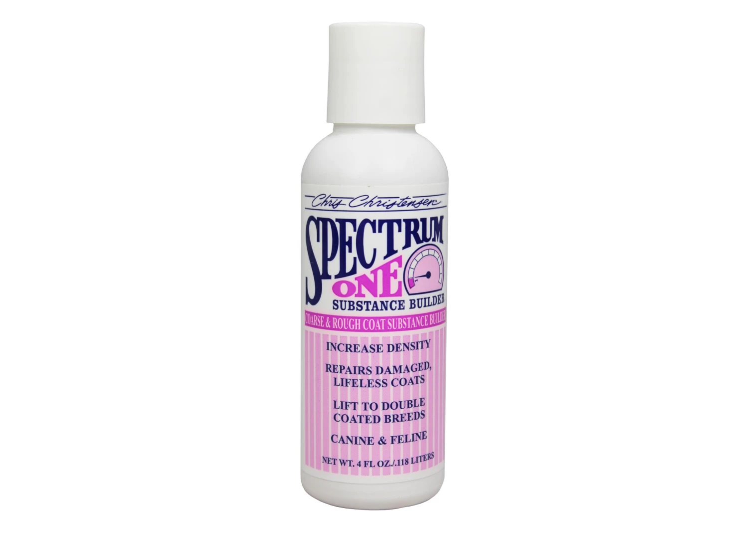 Chris Christensen Spectrum One Coarse and Rough Coat Substance Builder turns flat, lifeless hair into thick, springy, full coats for perfect styling manageability. It is the only answer for precision scissor work and delivers unsurpassed visible results. Hard-coated terrier jackets will lay flat with great texture and furnishings will be full and vibrant.