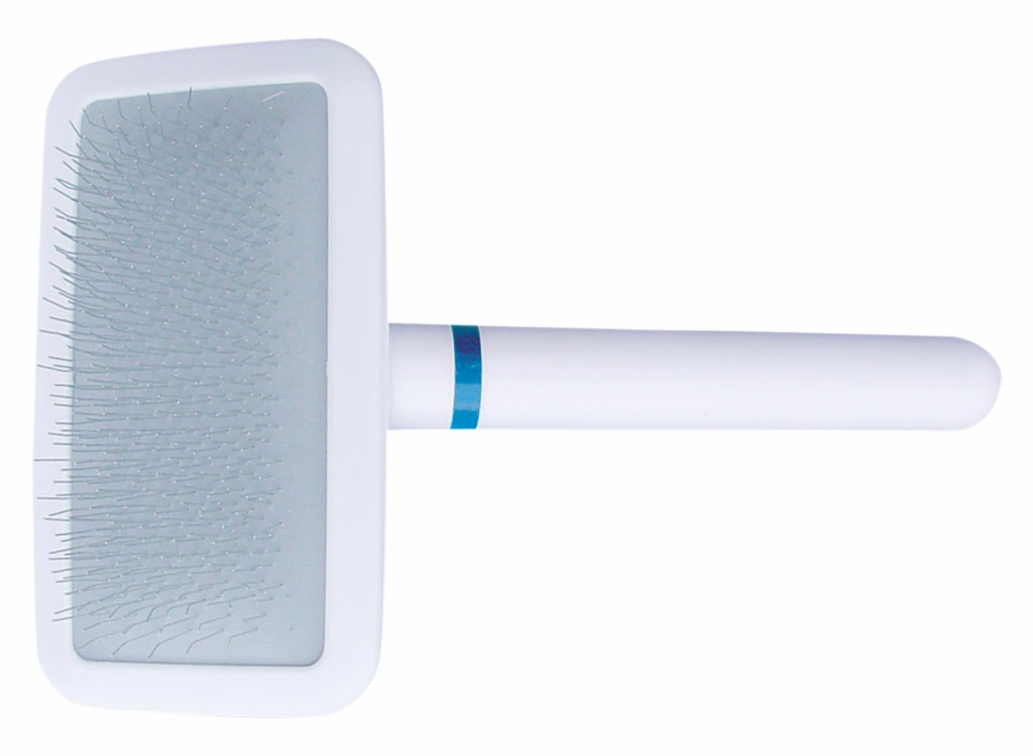 Made entirely from plastic, these slickers are among the best available. The pins are securely mounted through an ultra-soft rubber cushion which flexes with each stroke through the hair. Especially for show dogs or for whenever every hair counts. Available in 2 sizes, small and medium.