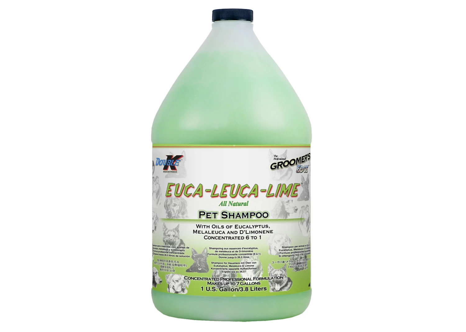 Double K Euca-Leuca-Lime natural shampoo to ease summer problems and to help heal skin. This special formulation contains Eucalyptus and D’Limonene for pesticide-free effectiveness, and Melaleuca Alternifolia (Tea Tree Oil) to soothe irritated, bitten skin. Super fresh citrus scent. For use on dogs, cats and all other companion animals. Concentrated 6 to 1. Available in 473 ml and 3.8L.