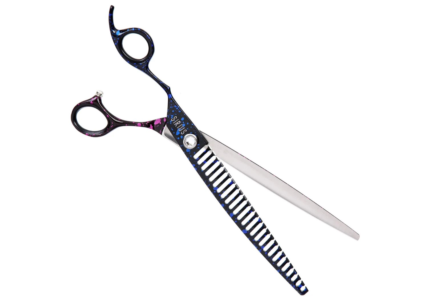 Looking for a top quality and professional scissor? Look no further than the Groom Professional Sirius 20 cm – 8″ left handed Chunker 26 Teeth. This scissor is made from 440 steel, meaning it is both sharp and durable. It also features an adjustable tension screw, so you can get the perfect cut every time. Plus, the special coating on this scissor adds to its durability, making it a great investment for any groomer.