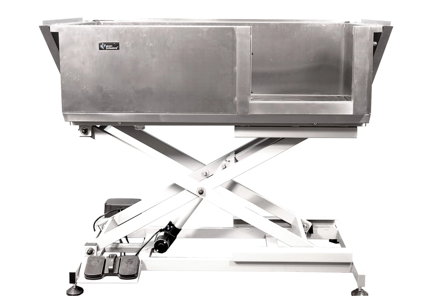 For the most comfortable, professional, and reliable pet bathing experience, the Groom Professional Supreme Stainless Steel Bath with Electric is the ultimate choice. This superior bath is built from 1.2mm SS304 grade stainless steel – one of the thickest in its class – for exceptional durability and less noise while a pet enjoys their cleansing session! This amazing electric bath features a powder-coated frame that can be adjusted to heights ranging from 25cm up to 102cm, making it higher than any other tub around. Moreover, the water-resistant pedals ensure smooth action when raising or lowering this high-quality construction without startling pets during baths.