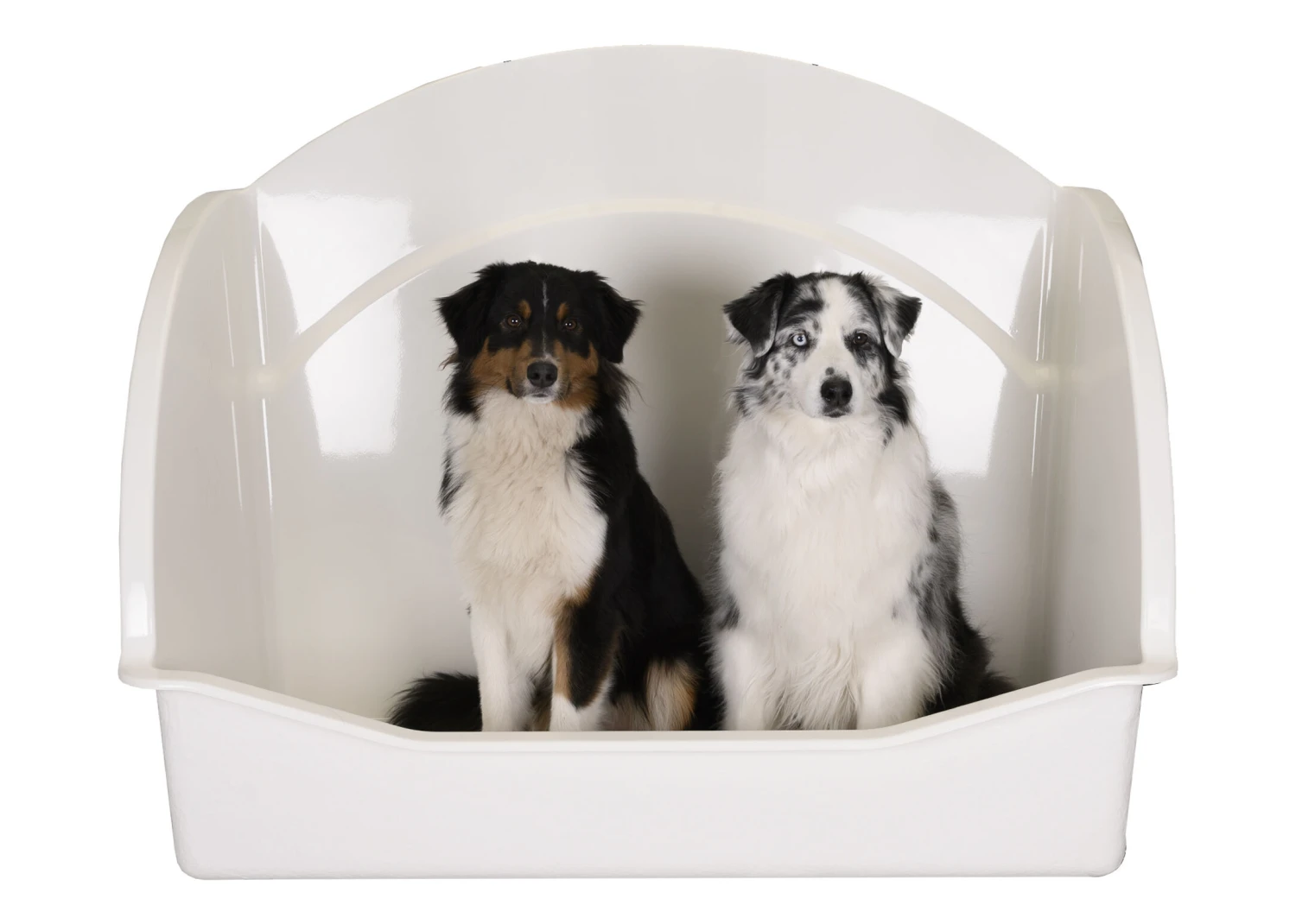 This professional bath tub is made from fibreglass with a durable, bright and shiny, white gelcoat finish, making it easy to clean and keep looking smart for years to come. The unique design is both attractive and practical, featuring a higher splashback to keep the water in the bath. Atlantis is suitable for all breeds and measures L122 x D72 x H96 cm. Place for drain is provided at right hand side of tub (drain fittings not included). The Atlantis Pro Tub can be easily installed in most grooming salons at a fixed height, alternatively it is available with an electric (ref.15GRX002) adjustable height system.