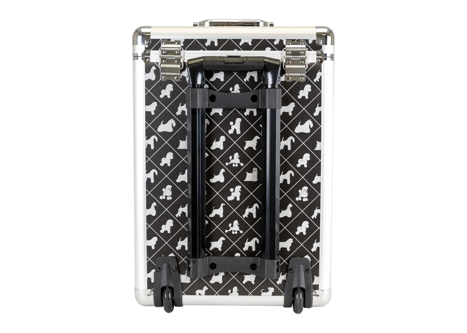 - Large storage case for all kinds of (smaller) grooming equipment with 2 wheels, a telescopic handle and a unique drawer system Â