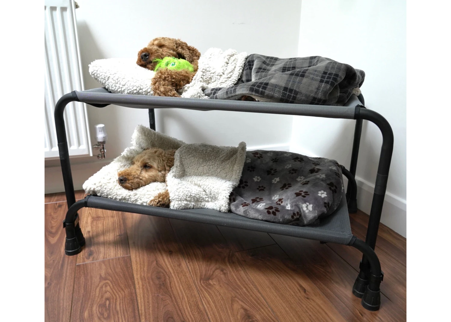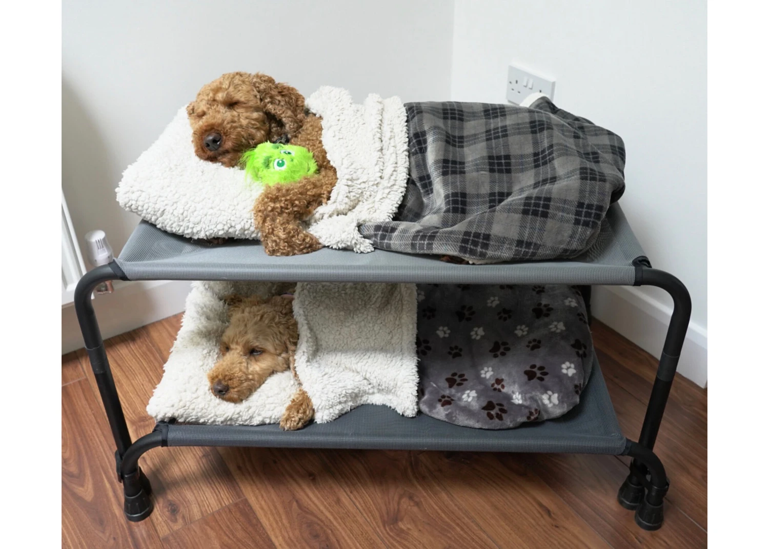 Sleeping and chilling is so much more fun with bunk beds. Not only are they fun for your pet, but they also allow you to save space. Leg extensions help you to create space saving bunk to a high-level bed. The HI-K9 saddle clips are perfect if you want to join beds together (by more than one leg) and create extra stability.