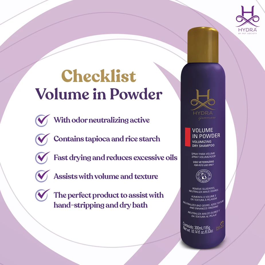A dry shampoo that removes bad odours and excess oils from the coat. This spray is easy to use and is a highly recommended for all handstrip breeds to increase grip and remove excess oils. Infused with Tapioca and rice starches to enhance coat texture and volume, this unique product is essential for prepping wire coated breeds at dog shows.