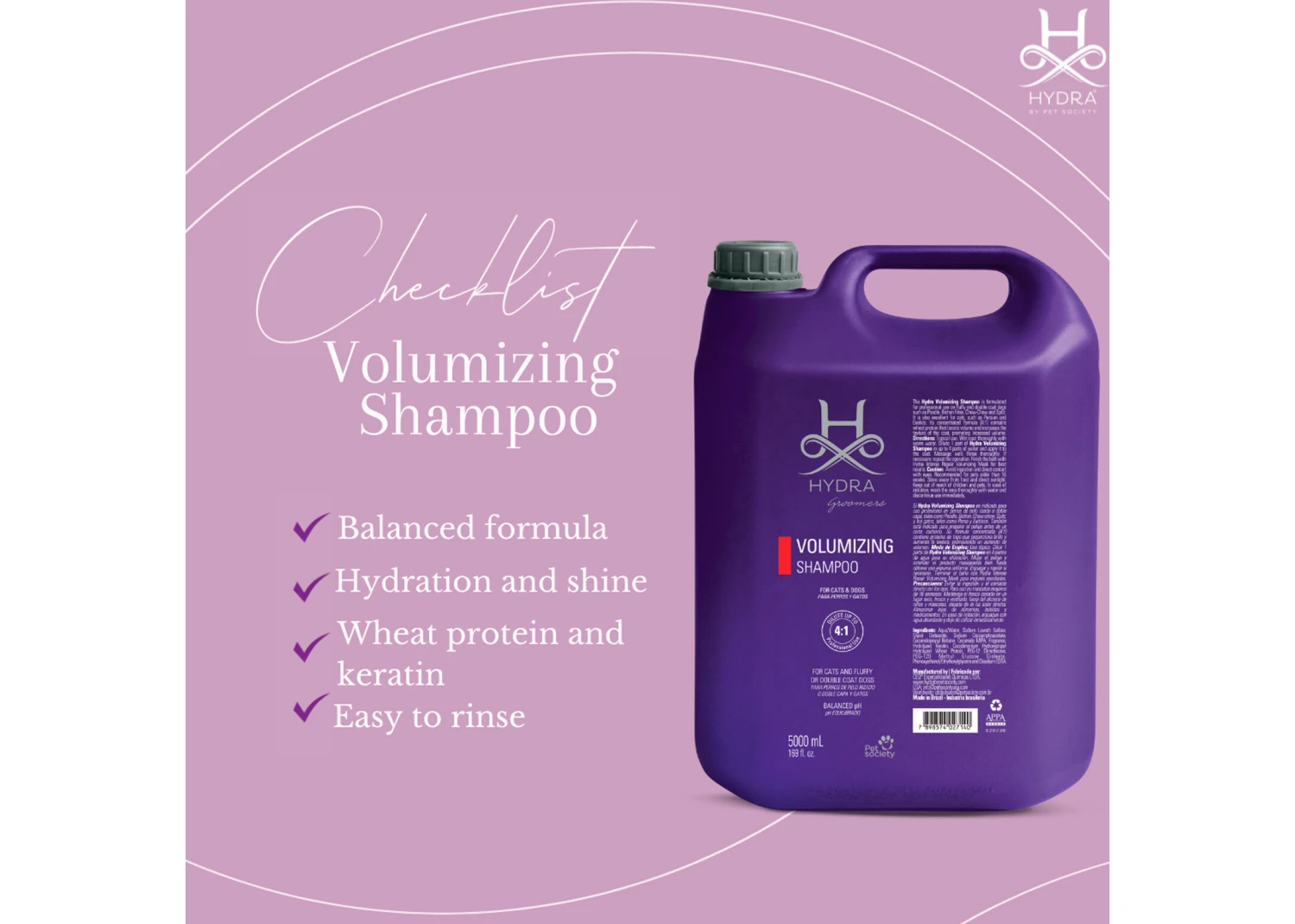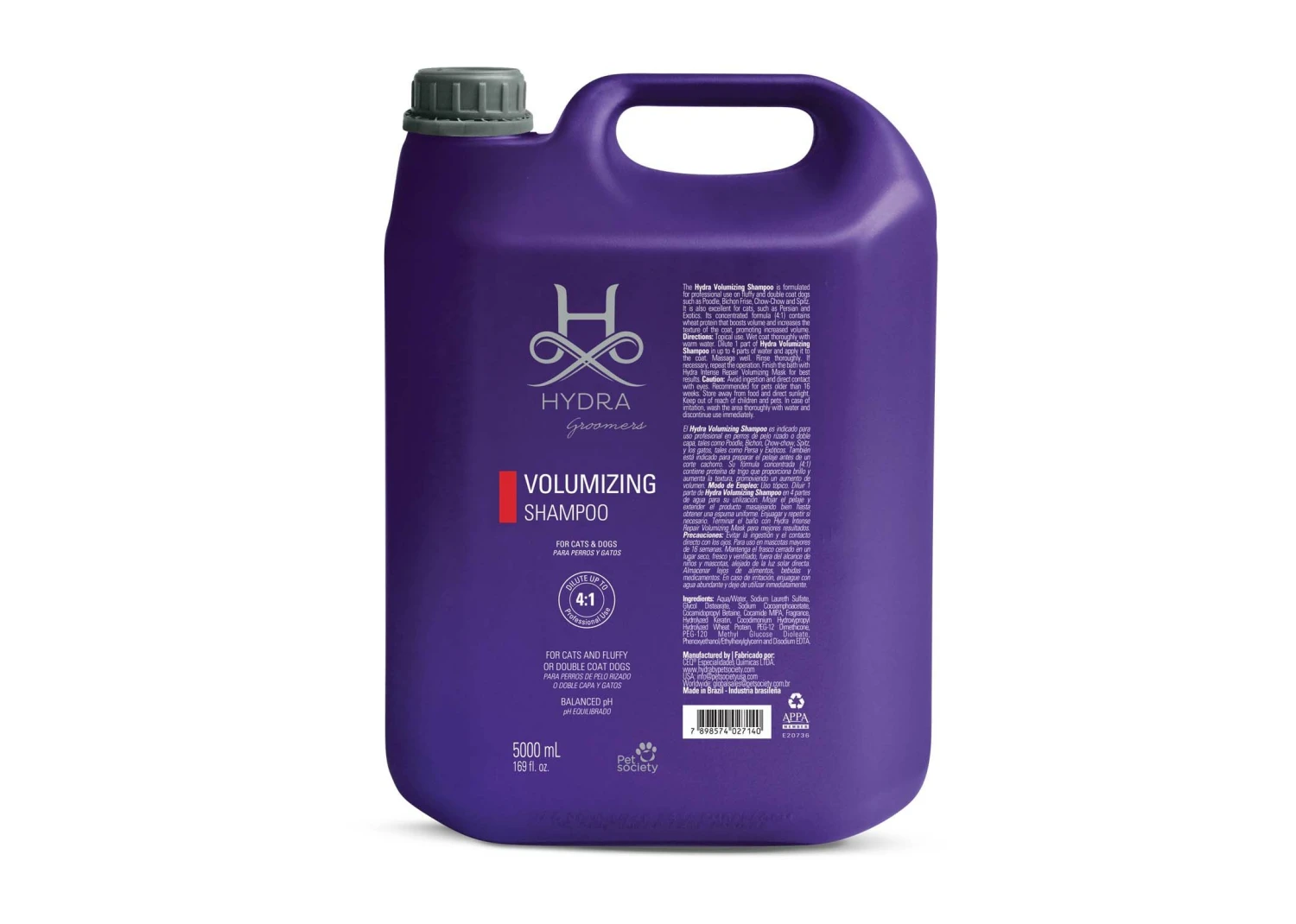 Hydra Volumizing Shampoo is formulated for professional use on dense and curly coat types such as Poodles, Bichon Frisés, Chow-Chows, and Spitz.  This shampoo is also excellent for use on cats such as Persians and Exotics. The concentrated formula contains keratin and wheat proteins that boost volume and increase the texture of the coats. This is a professional shampoo designed by groomers for groomers and is suitable for all breeds of dogs and cats and may be diluted 4 to 1. Available in 1L and 5L size.