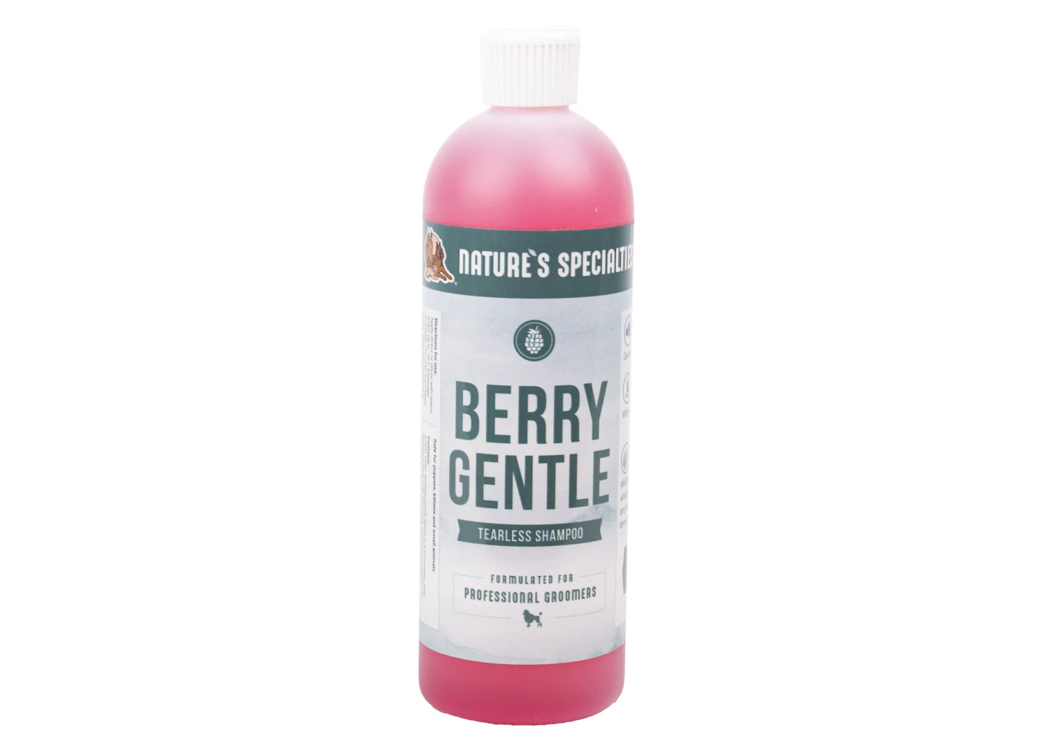 Berry Gentle is a Tearless Shampoo that features a delightful, long-lasting berry fragrance, leaving your pet’s coat bright and shiny. This mild shampoo is gentle on the skin and coat, and it’s safe for use on puppies. Even though it is “Tearless,” it is still recommended to take precautions to protect your pet’s eyes and rinse them gently if any product comes in contact with them.