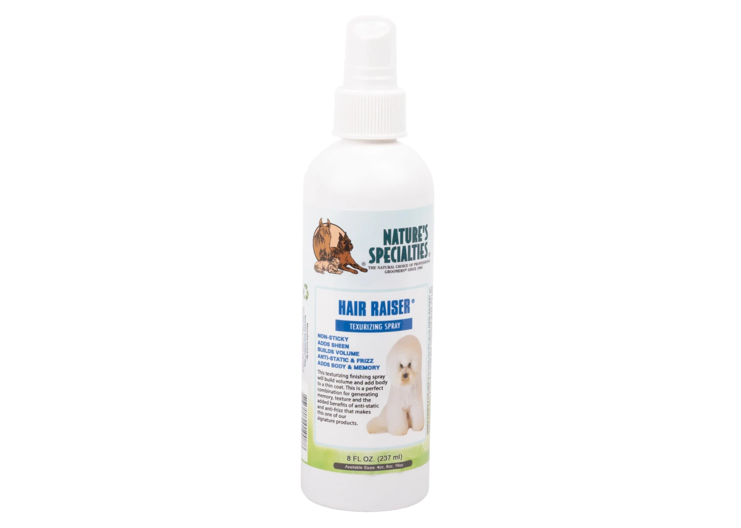 Experience the perfect blend of texture and the added benefits of anti-static and frizz control. Nature’s Specialties Hair Raiser is more than just a conditioner; it’s a signature product that transforms your pet’s coat, making it easier to style and groom.