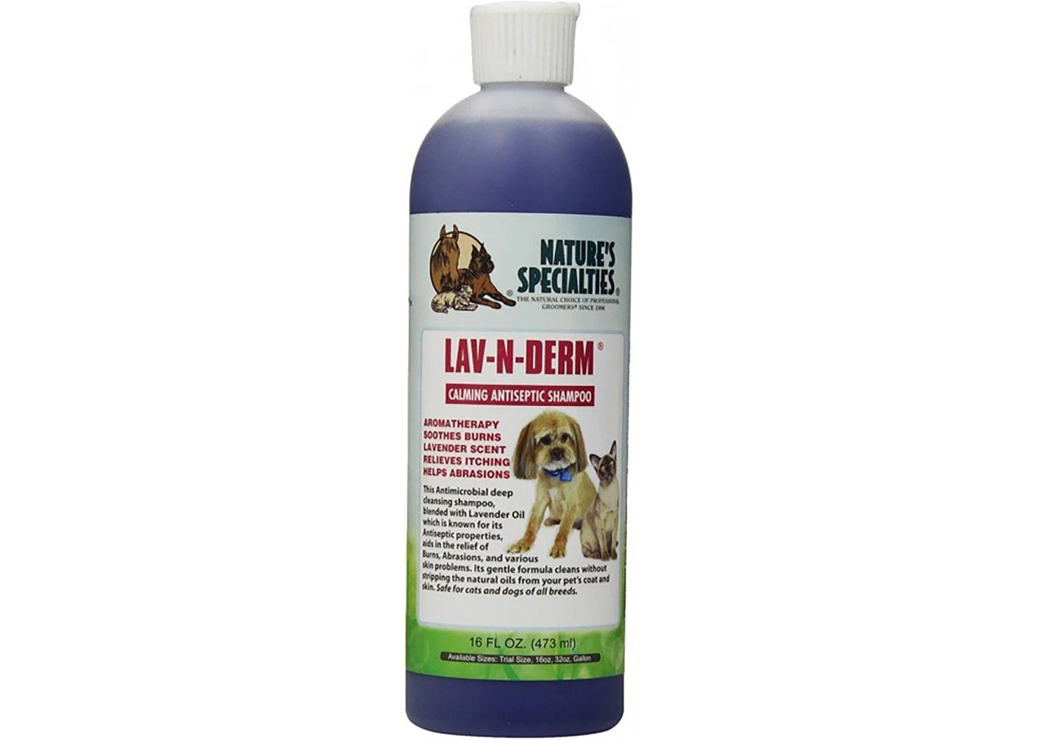 Nature’s Specialties Lav-n-derm shampoo is a gentle and calming option that features the relaxing scent of lavender. The shampoo is renowned for its antiseptic properties and ability to provide deep cleaning without stripping the natural oils from the coat. It can be diluted up to 50:1, making it a highly economical option. However, if you’re using it for antiseptic purposes, it is recommended to increase the dilution to 24:1 or 12:1, depending on the coat type and the situation at hand.