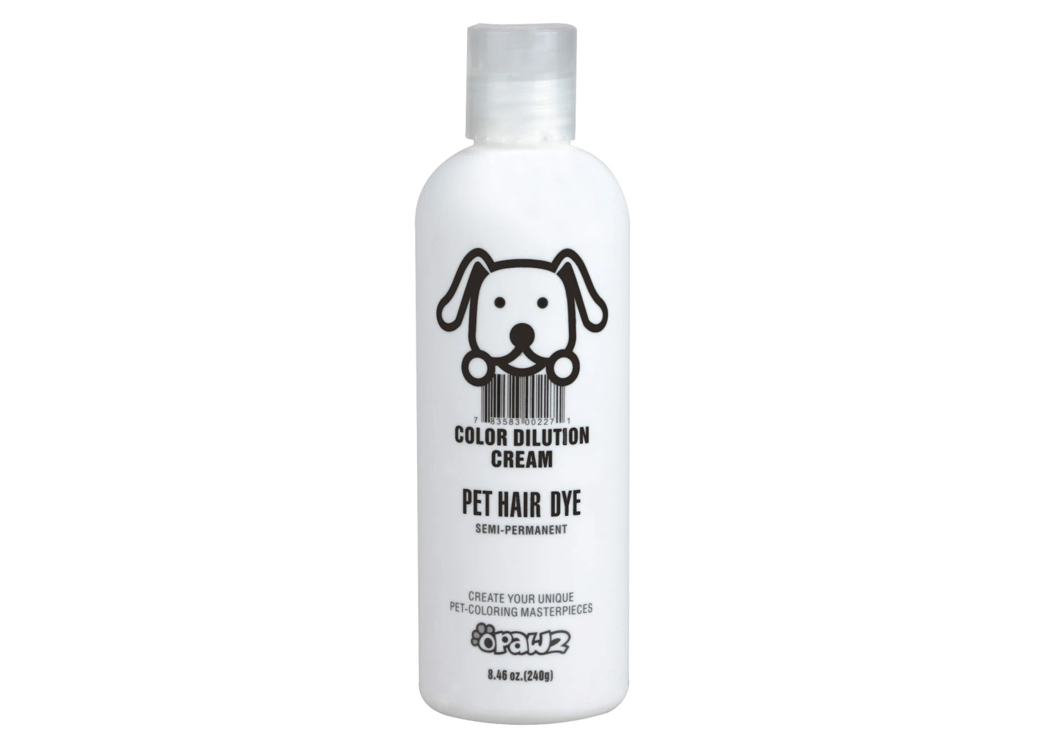 OPAWZ Color Dilution Cream is an innovative formula helping to generate numerous wonderful color when mixed with other OPAWZ Pet Funky Colors. Wide choice of color to create unique pet-grooming masterpieces. DIRECTIONS: Mix well with other OPAWZ pet hair dyes at certain ratio according to your desired color. Apply the mixture evenly to target area. Cover with plastic wrap or foil. Leave on for 20-25 minutes and rinse after. Note: For coloring limited areas, such as ears or tails, you may apply to dry fur. Results may vary depending on application strength and individual pet’s coat. Coloring results may vary with coat type and breed. CAUTION: