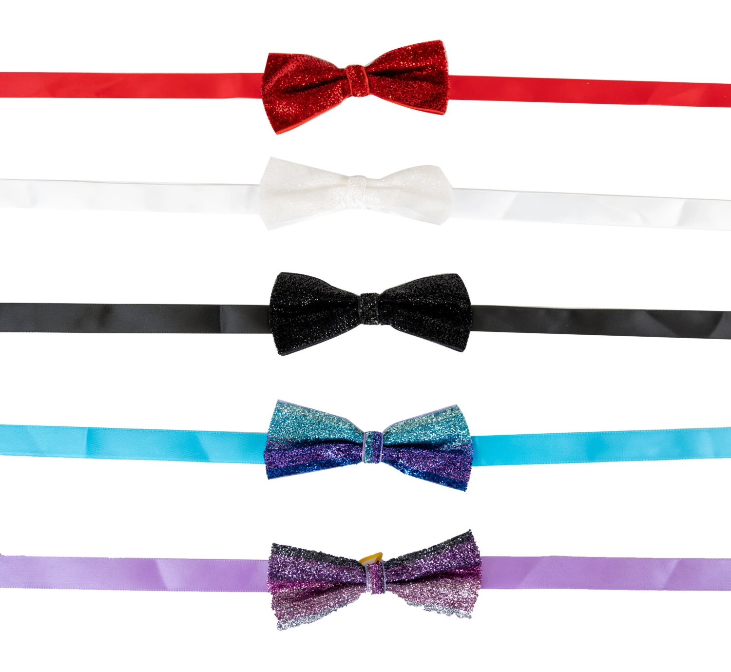 – glitter: polyester - Washing instructions: We do not recommend washing the bows. If really necessary, superficial spot cleaning can be done by hand and a minimal amount of water.