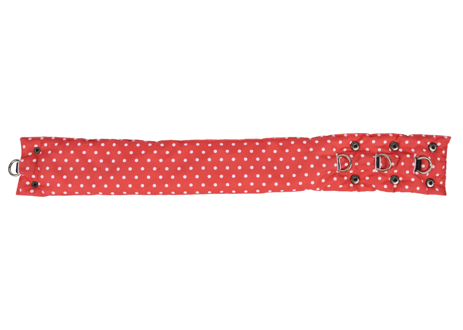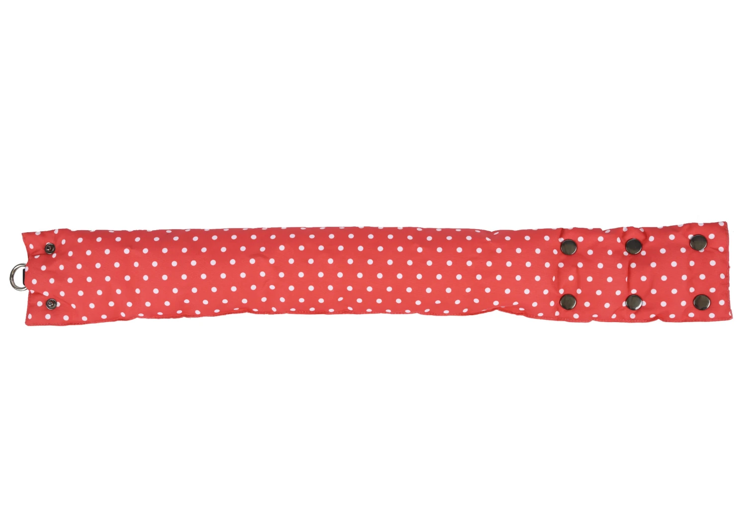 This ingenious protector consists of a nylon collar with a protective, padded Polka Dot cover. The collar features 4 sturdy, chromed rings which allows 3 different collar lengths to be selected: 50, 56.5 and 62 cm, making it suitable for many breeds. The padded cover can be adjusted with press studs according to the length of collar selected. Simply choose the length required, close the press studs and attach your lead to the chromed rings… Simple!Â