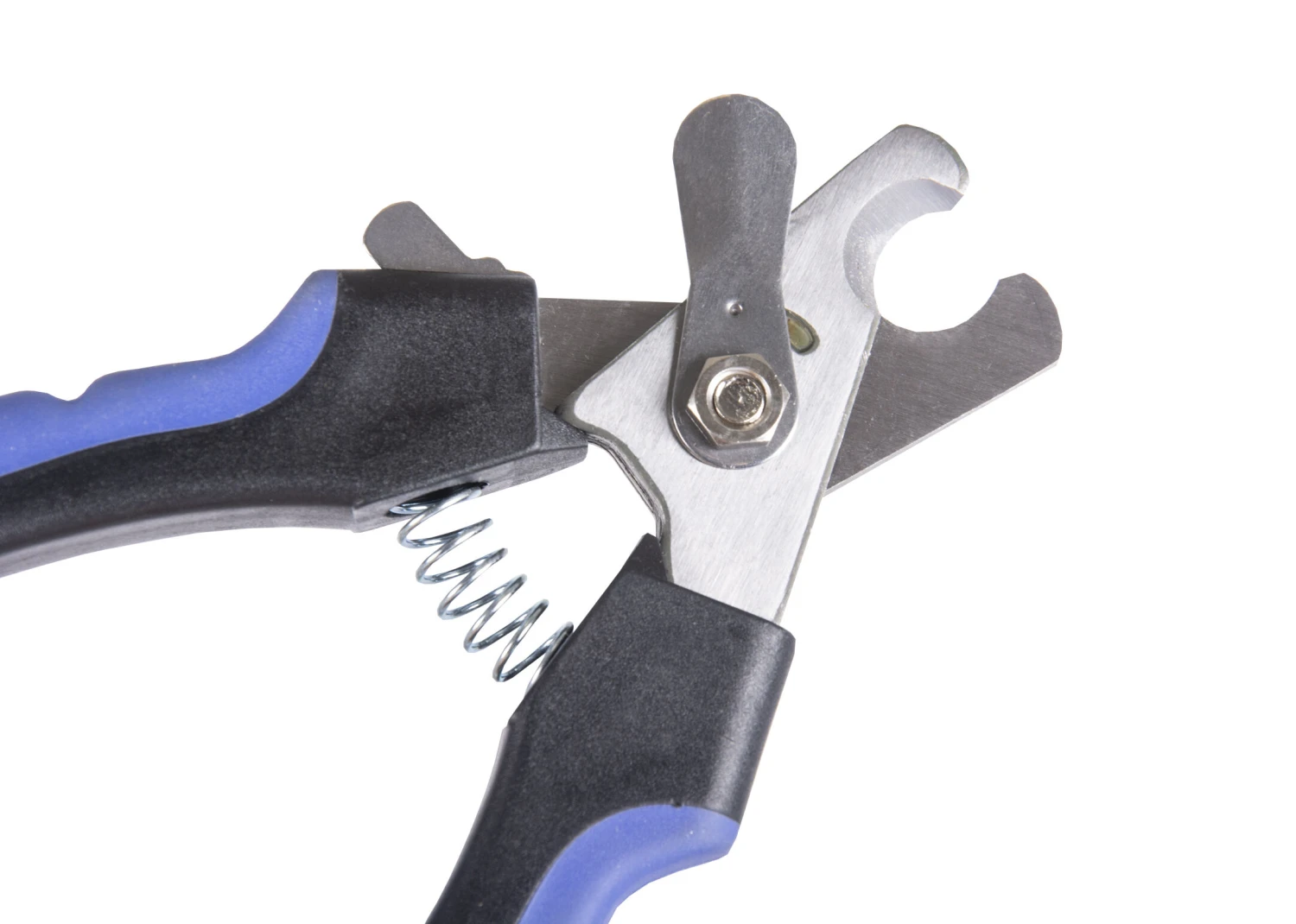 High quality tools feature stainless steel blades with a heavy duty spring and positive locking mechanism. The safety stop may be used to ensure that only the correct amount of nail is removed, reducing the risk of cutting into the quick and causing the dog discomfort. The moulded handles have a special silicone rubber antislip grip for maximum comfort. Available in medium and large sizes.