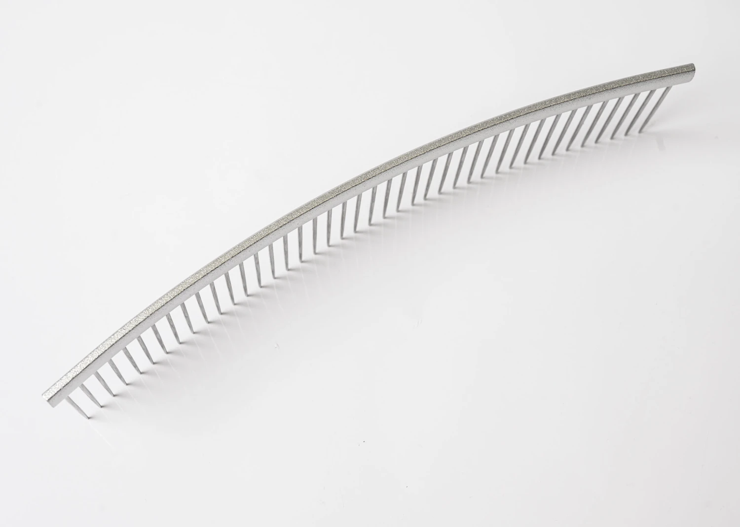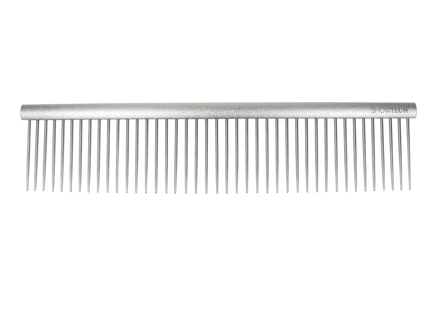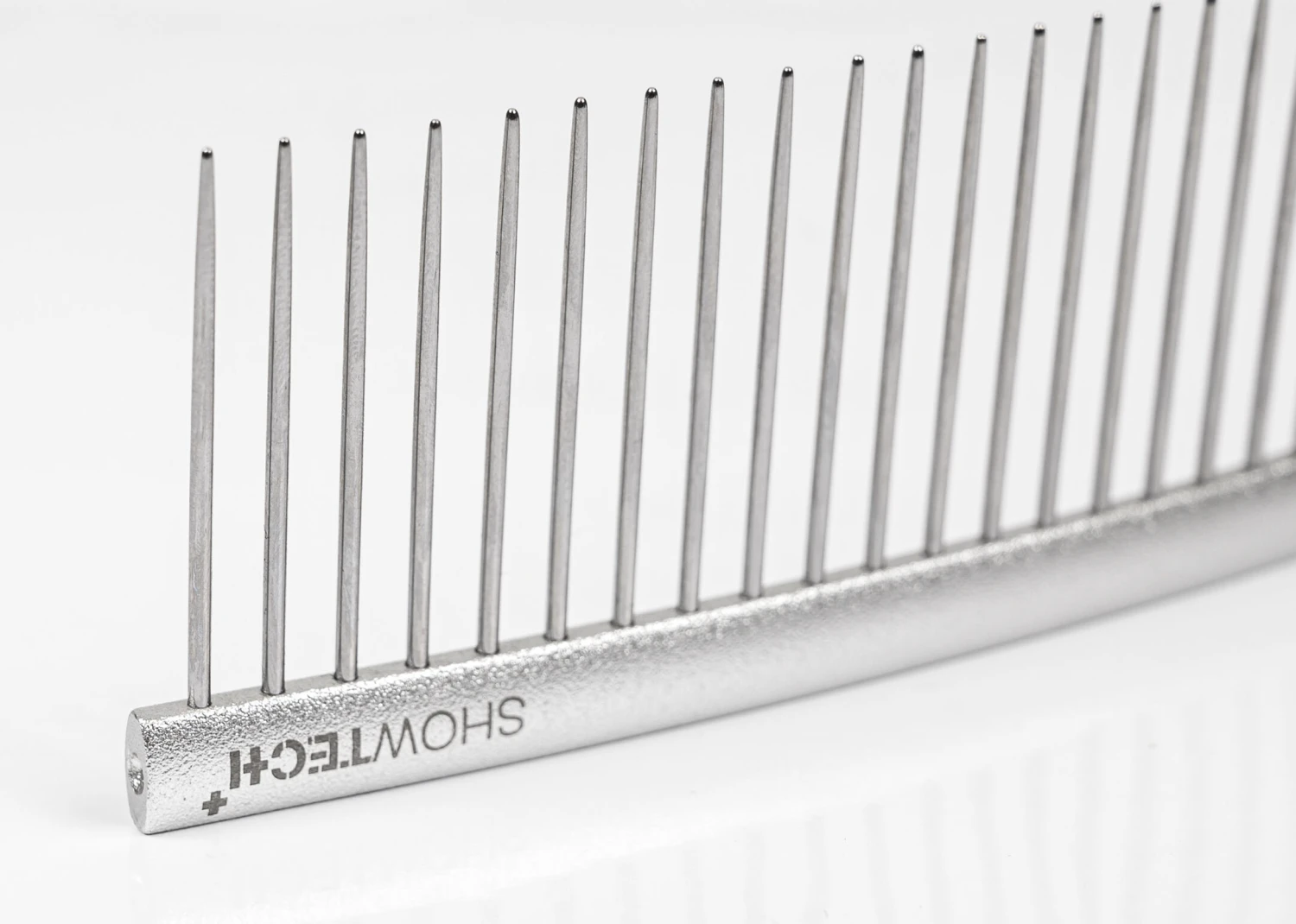 When scissoring your dog’s coat, your joints and muscles sometimes have to endure a great deal of stress. That’s why Show Tech+ has developed ergonomic combs that are light as a feather. Thanks to the spine made from aluminium, these combs are the finest and lightest available! To prevent damage to coat and skin, each polished, stainless steel tooth has a rounded tip. This precision tool is designed to take the ordinary scissoring a level higher and allow you to work with a quicker and more precise technique in a fraction of time. Â