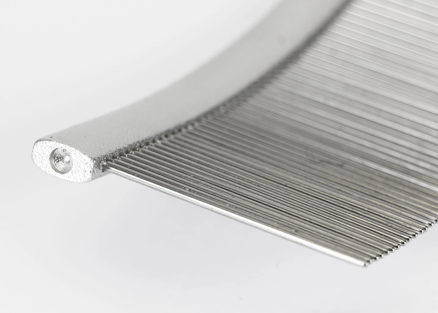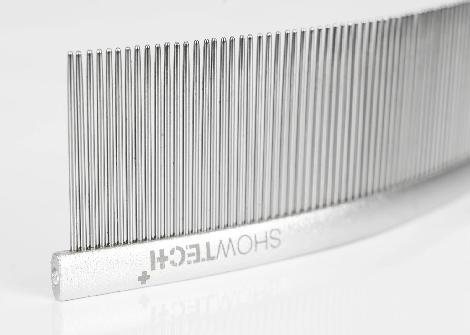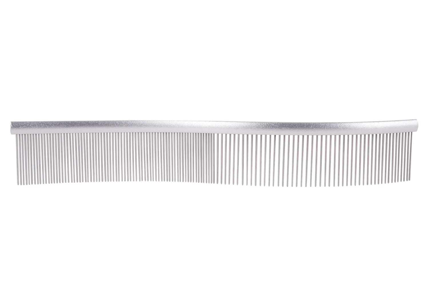 With its curved back and ultra-light aluminium handle, its long pins allow you to comb the most difficult parts to reach and accentuate the natural curves of the dog. A real must-have.