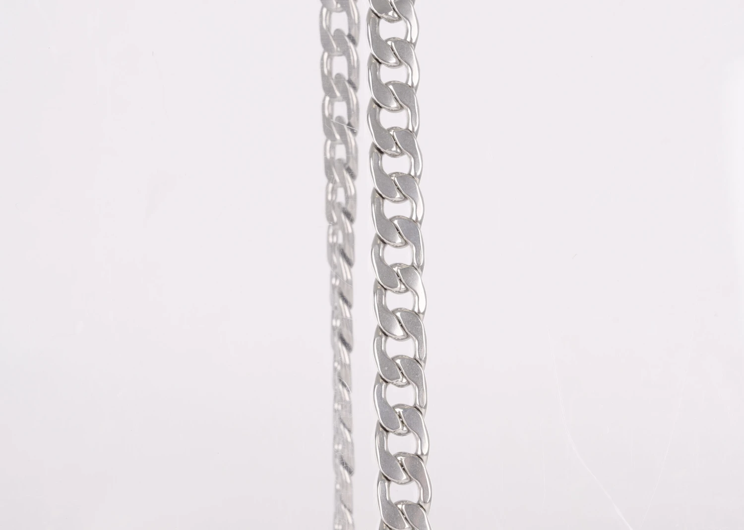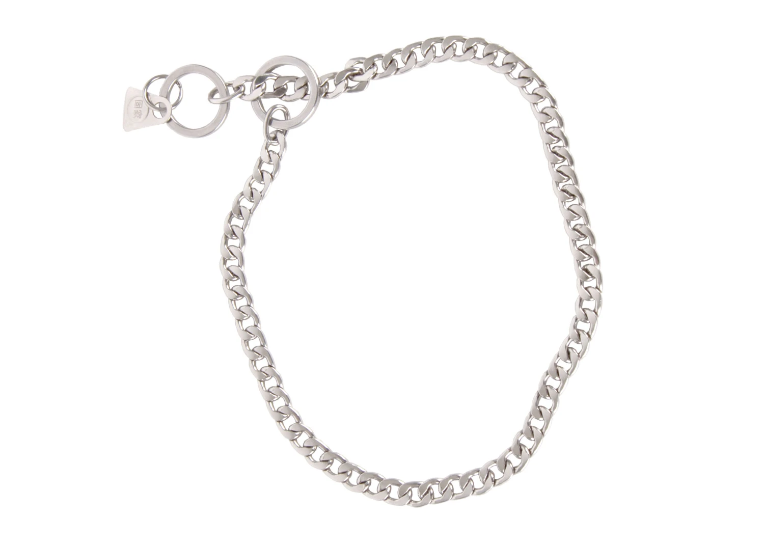 Beautiful, polished stainless steel flat link chain for show dogs. This chain is not plated so retains its shiny appearance even after long use. Available in 15 different sizes to suit all breeds.