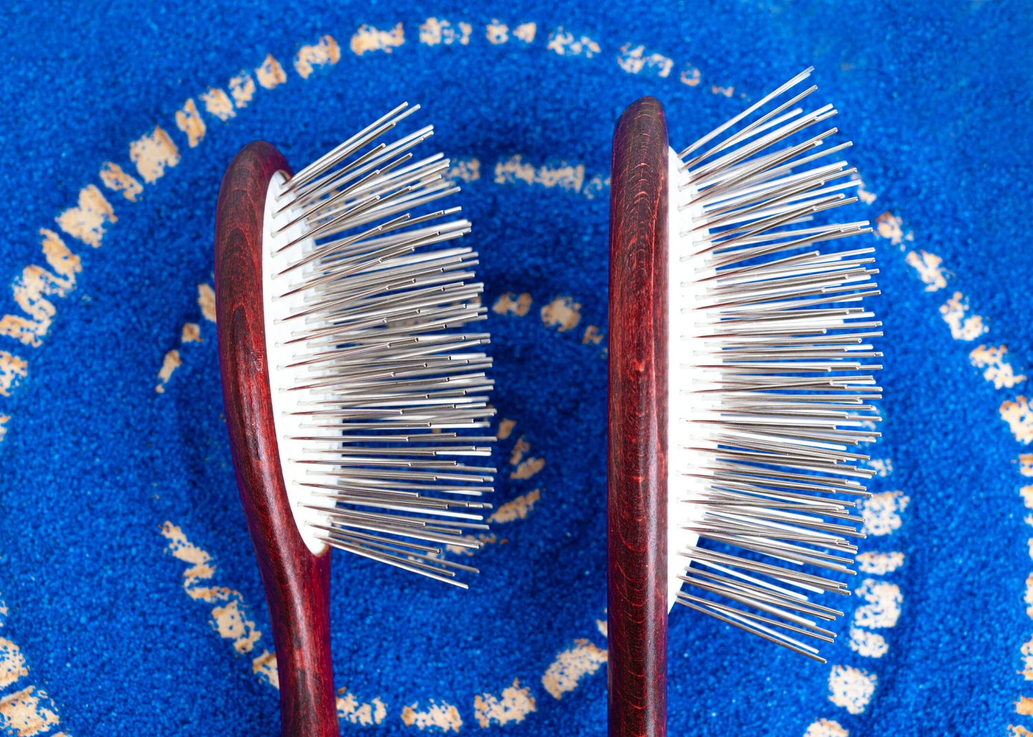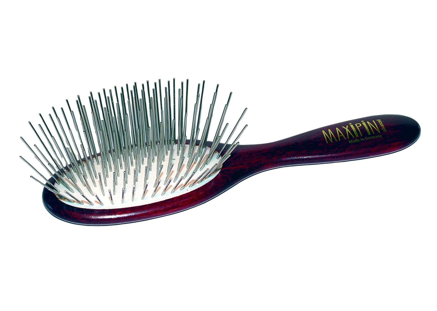 These wooden handled pin brushes are quality made in Germany. With extra long metal pins mounted in a supple rubber pad, these brushes are recommended for long show coats, allowing thorough brushing without damaging the coat.
