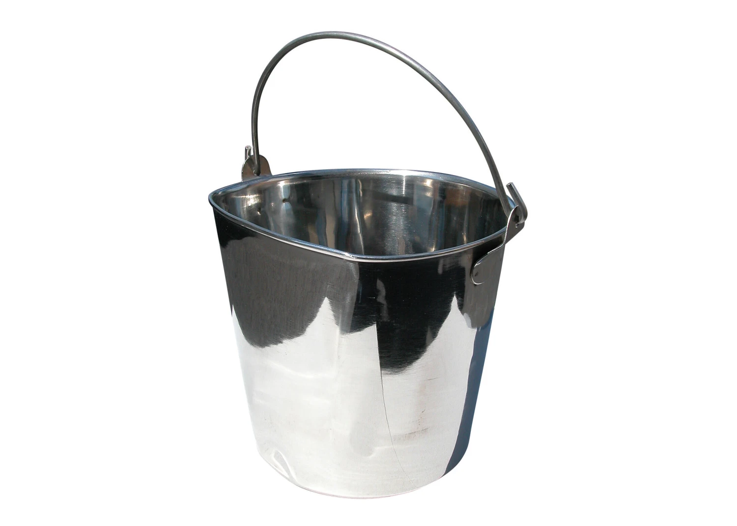 Top quality stainles steel feeding pails from Show Tech. Special flat side to hang onto on any cage.