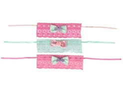 - Choice of a lace collar (in baby pink and mint green) or a stylish tie with lace, pearls and flowers (in red and purple)