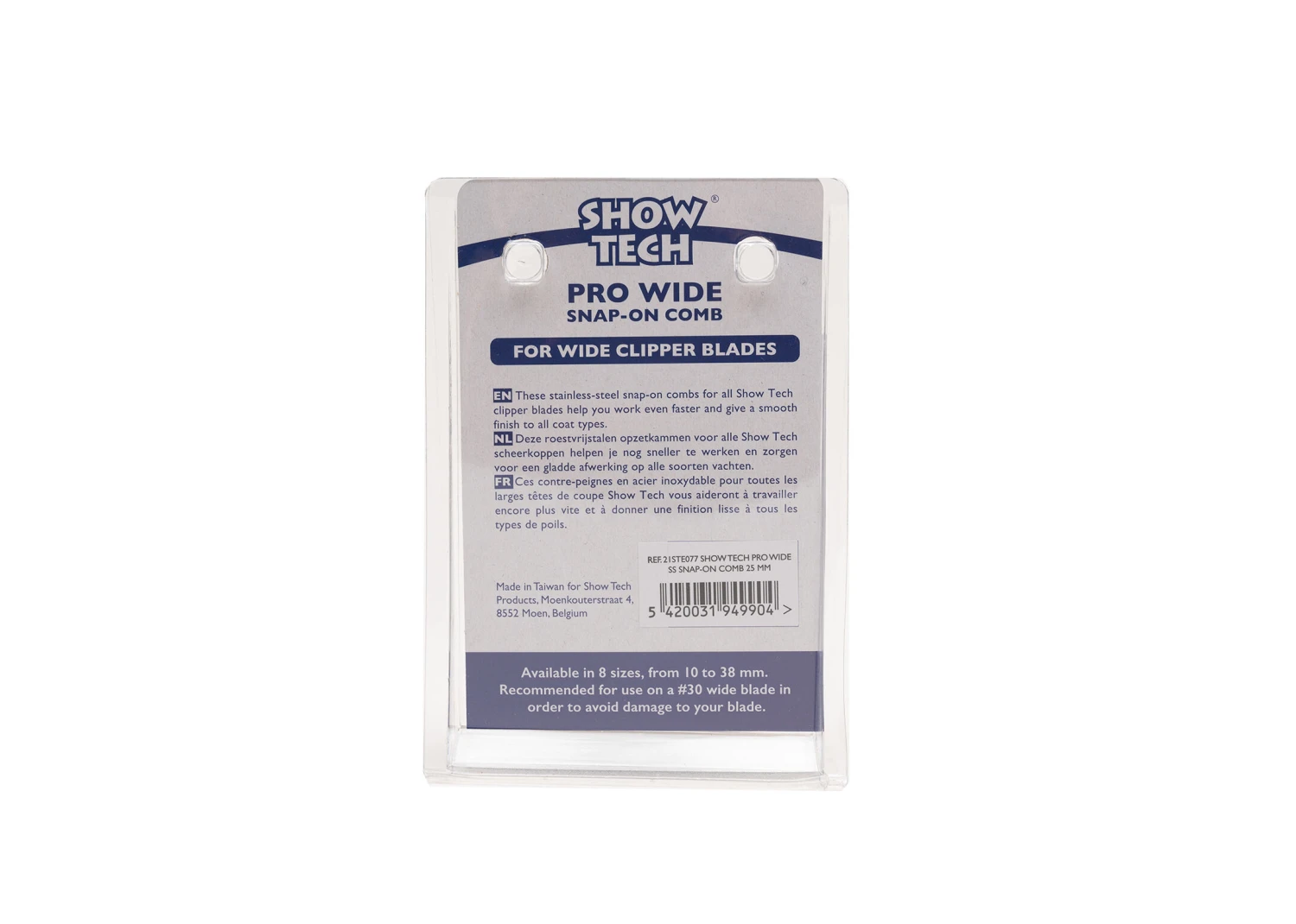 These extra wide stainless-steel snap-on combs for the Show Tech wide clipper blade #30 (and #15 and #10) help you work even faster and give a smooth finish to all coat types.Â