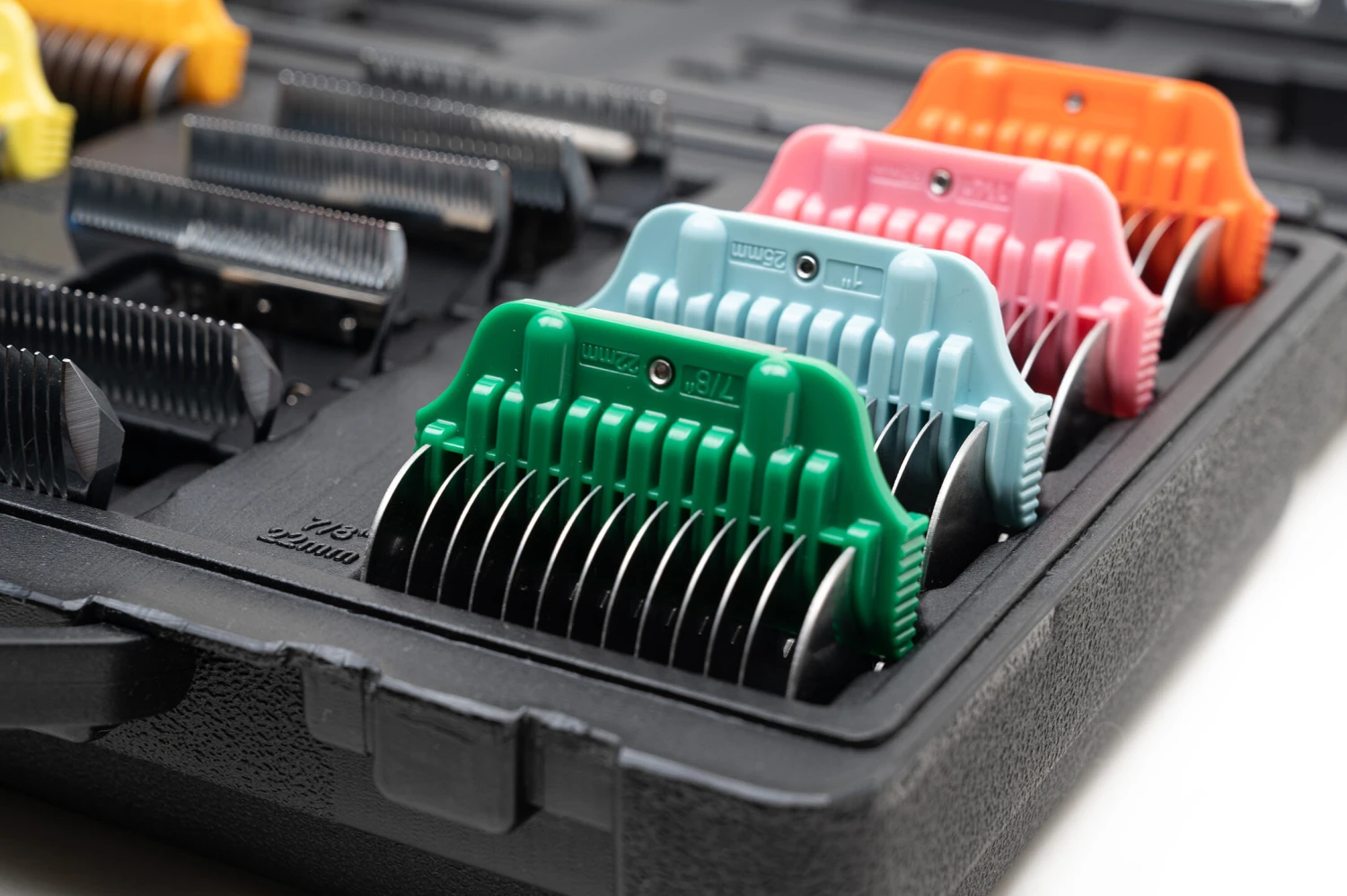 Always use the snap-on combs on well-washed, blow-dried and brushed coats. They can be used on any curly coat (such as a Poodle, Bichon Frise) or silk coat (Maltese, Shih Tzu, York Terrier) and when speed and commercial efficiency are your priorities.