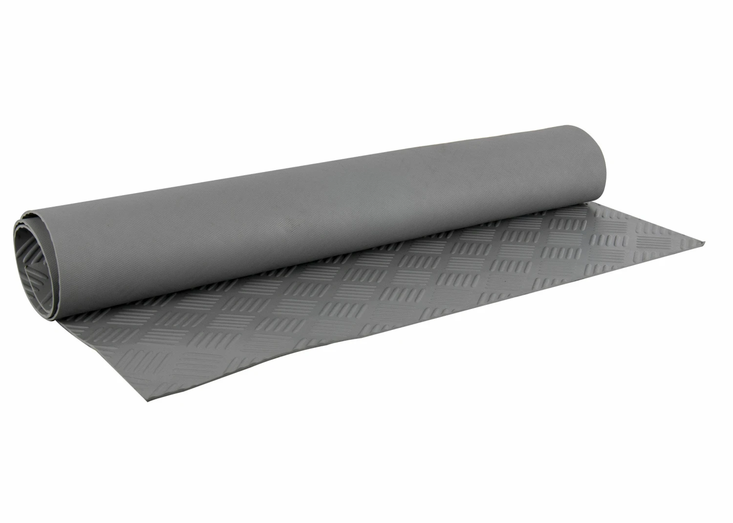 This rubber/vinyl mat measures 111,5 x 60 cm and has an easy clean raised profi le antislip surface. Light grey or green color gives better contrast to dark coats.