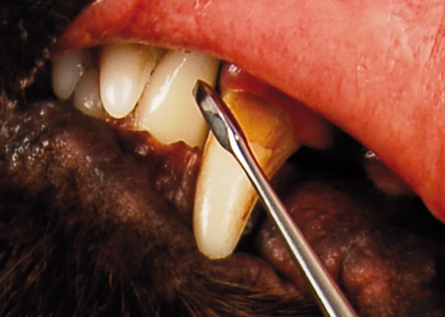 Extremely fine hook toothscaler for in-between teeth. The curved side of the hook may also be used for scaling any curved surface. Attention, this instrument is extremely sharp!