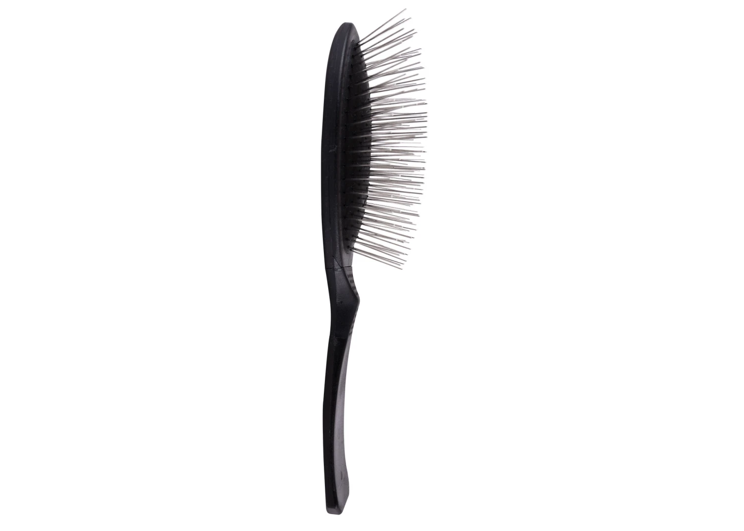 Instructions for use: Long coats-Gently brush with a light, long stroke, brushing beyond the ends of the hair tip to avoid static and breakage. For best results brush the hair in layers. Start at the bottom by parting the coat horizontally and holding the un-brushed portion up with your free hand. Work methodically upwards, keeping your wrist straight to avoid contact with the dogs skin. Curly coats-Brush in the direction of coat growth and then against it using light, long strokes. Harsh coats-Brush the coat in the direction of coat growth then against if necessary to remove mats and dead hair. Pay special attention to areas that are prone to matting, like behind ears, on the loins and under the legs. Use a coarse comb to check for any remaining mats after brushing. The Ultra Pro pin brush is ideal for use after bathing while blow drying the coat. Use light, long strokes with and against the direction of coat growth. Brush slowly to avoid static build-up. If the coat is matted, use the Ultra Pro pin bush in combination with a Matbuster de-matting tool. To prevent mats and tangles, the dog’s coat should be regularly bathed, treated with a conditioner and brushed daily.