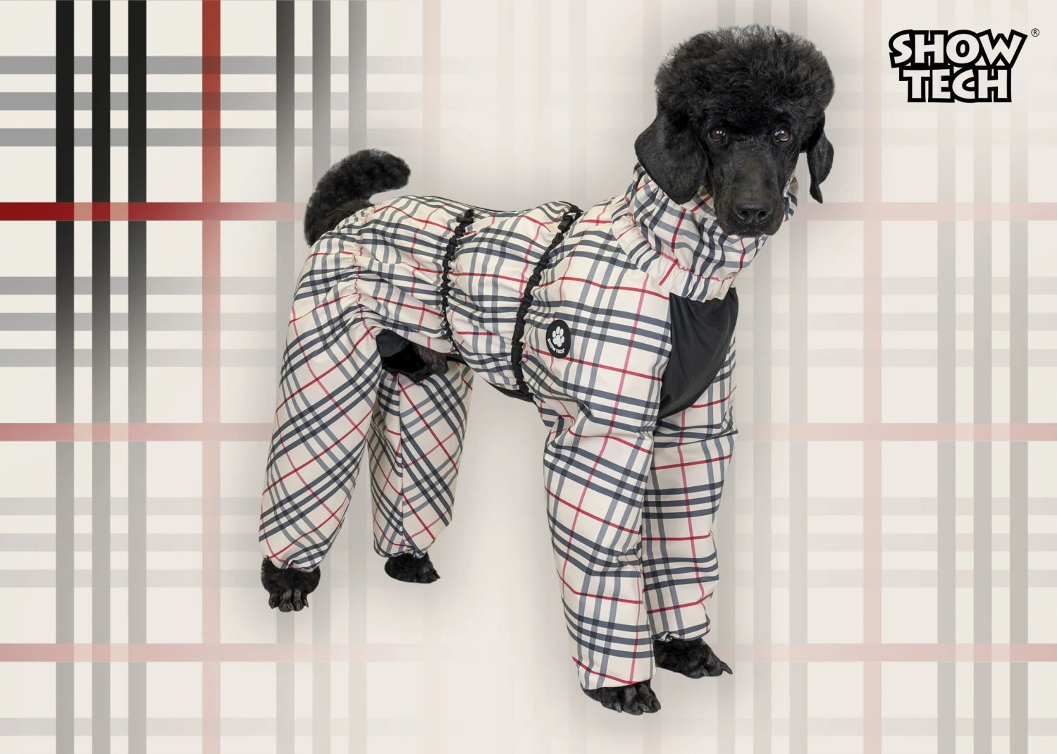Show Tech has developed the equivalent for dogs. This classic water-resistant dog suit allows you and your beloved four-legged friend to play outside or go for a walk together and still look stylish and well-groomed, even when it’s raining cats and dogs.
