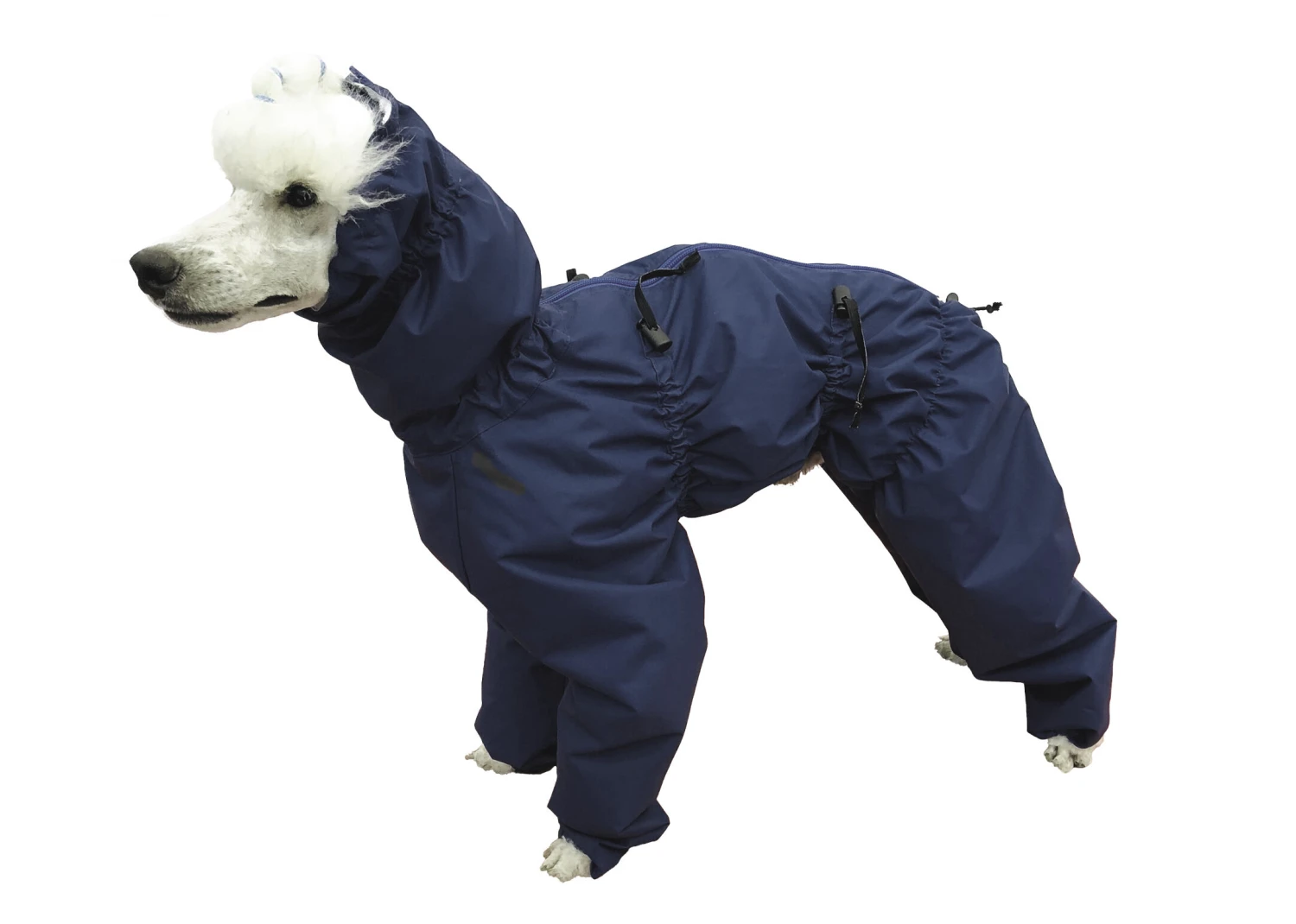 The Show Tech water resistant Trouser Suits are available in all sizes from 25 cm to 75 cm with the addition of special short-legged models in 25, 29, 33, 37, 41 & 45 cm sizes. These water resistant suits can be adjusted on the chest, waist, neck, legs and round the tail to guarantee a comfortable fit for all breeds whilst allowing the dog maximum freedom of movement. This design also features a higher collar to keep your dog dry.