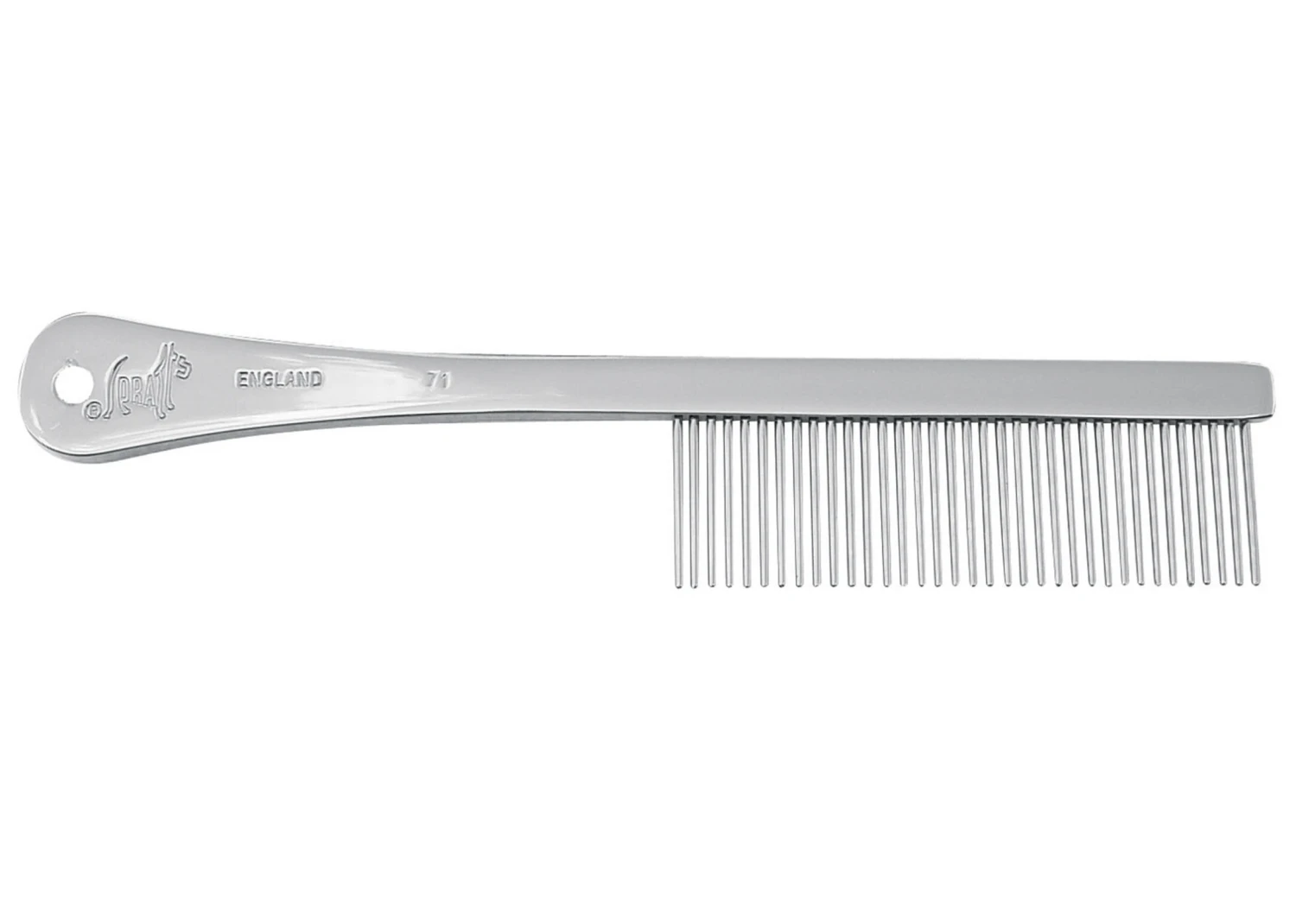 Spratts combs are all brass backed with extra dense chrome plating for show-dog coats. The teeth are individually hand set. Spratts combs come in a wide variety of different models and sizes, ensuring that there is a suitable comb for all breeds