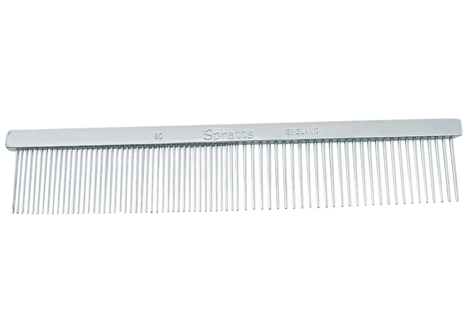 Spratts combs are all brass backed with extra dense chrome plating for show-dog coats. The teeth are individually hand set. Spratts combs come in a wide variety of different models and sizes, ensuring that there is a suitable comb for all breeds