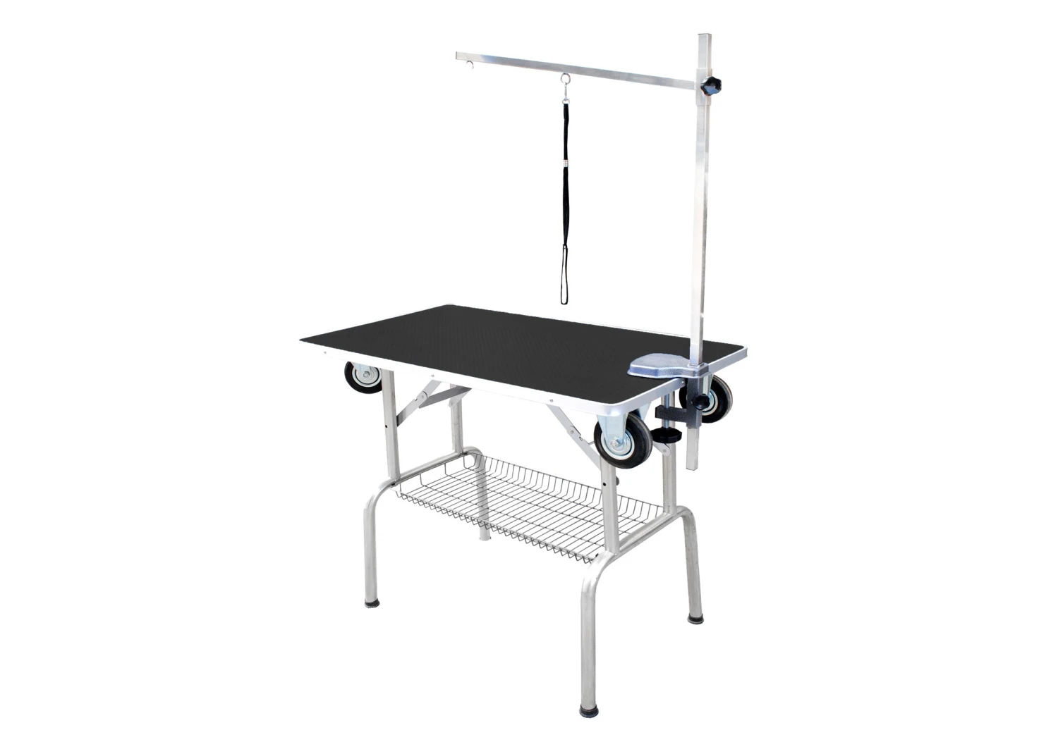 These portable grooming tables are available in 3 different sizes to suit all breeds. The anti-slip top can be supplied in different colours and the sturdy legs are made from stainless steel.