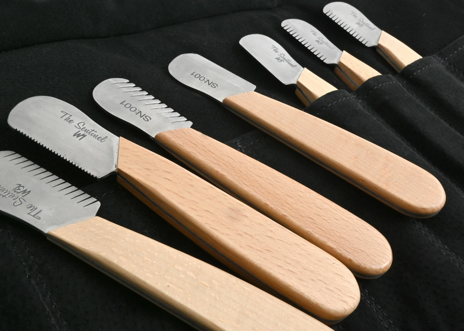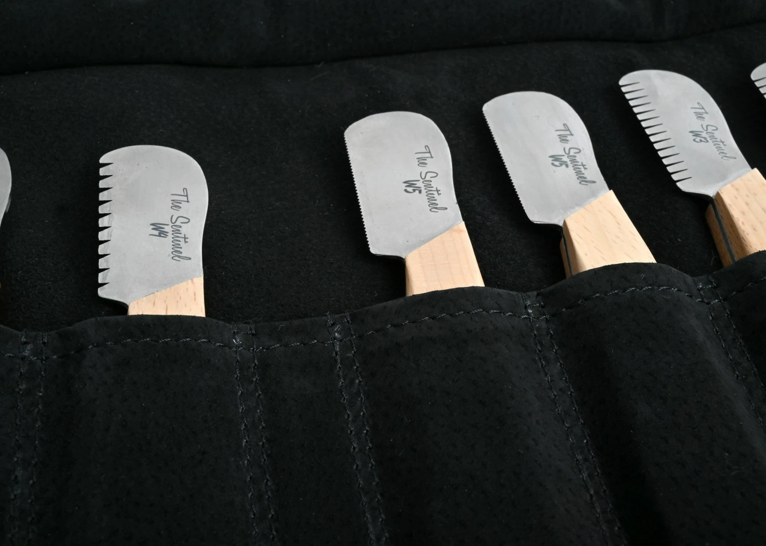 To keep all your favourite stripping knives safe, we have the perfect accessory: The Sentinel Small Leather Pouch.