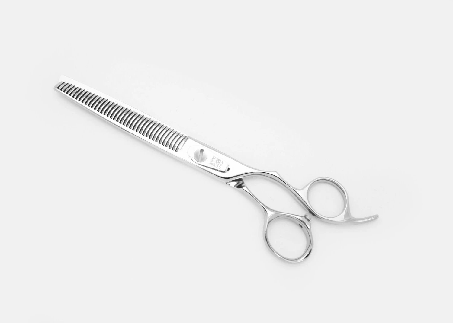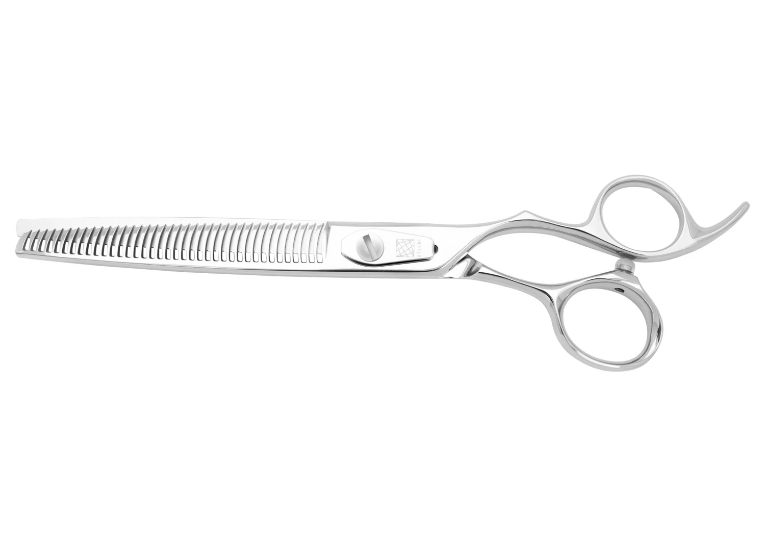 Its short shank is extremely ergonomic and fits in everyone’s hand. The 38 curved teeth are specially designed for fast blending and ideal for fine and drop coats, even for Cockers and Spaniels. Handmade in Japan and out of a high-quality cobalt ATS steel, this blender allows you to scissor 30% of the hair with 1 cutting movement. A must-have for dog groomers and breeders!