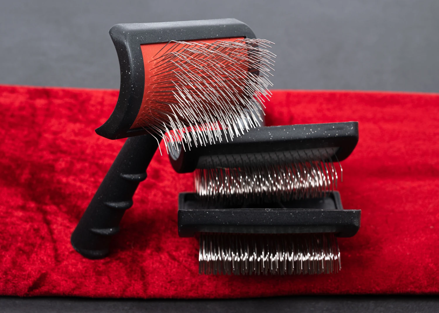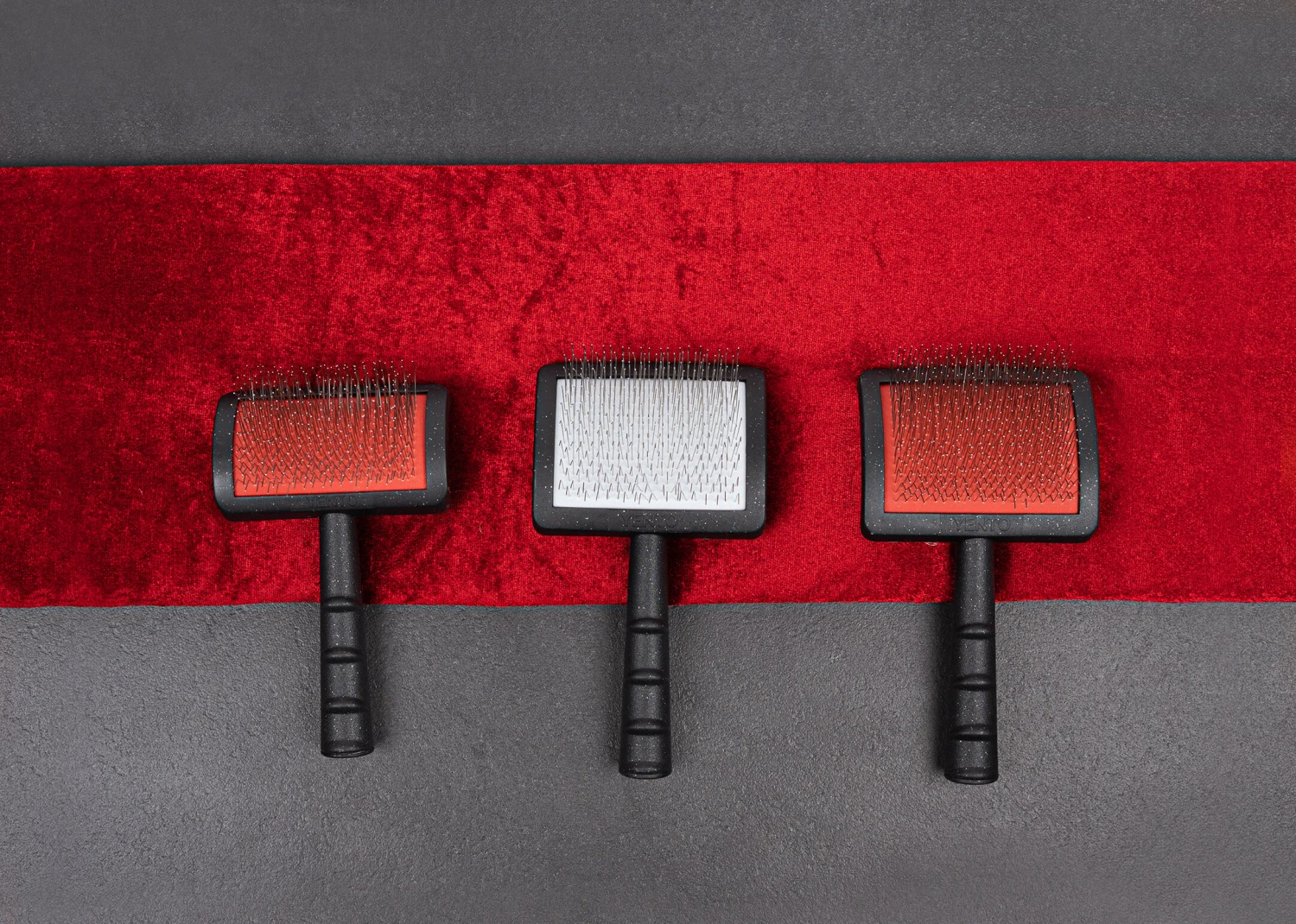 The Yento Mega Pin slicker is a high quality and ultra lightweight professional slicker brush with a long and comfortable ergonomic handle. These brushes feature mega-long pins (2,6CM) set into a firm pad and are specifically designed to penetrate long and dense coats. Available in 2 sizes the medium brush is extra curved to allow access to difficult to reach areas. These brushes are super efficient with difficult coats and allow groomers to achieve the best results in less time. Highly recommended!