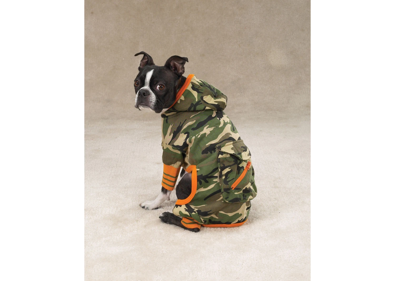 Camo jumpsuit for the canine adventurer. Polyester & machine washable